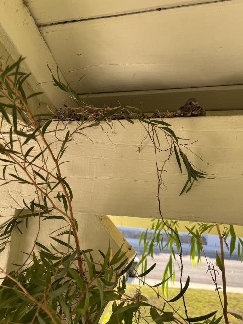 Once again, the neighbors are watching as I’m on tip-toes, stretching up as high as I can, trying desperately to not fall face first into the garden, holding onto my phone with one hand, blindly pointing it off in the direction of the nest, shooting pictures at random and hoping for the best..