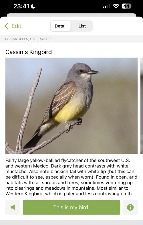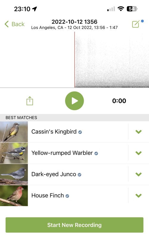 And that makes sense, because I recognize that name! The Merlin Bird ID app also has an excellent function for IDing birdsong, and late last year it had ID’d one of these!