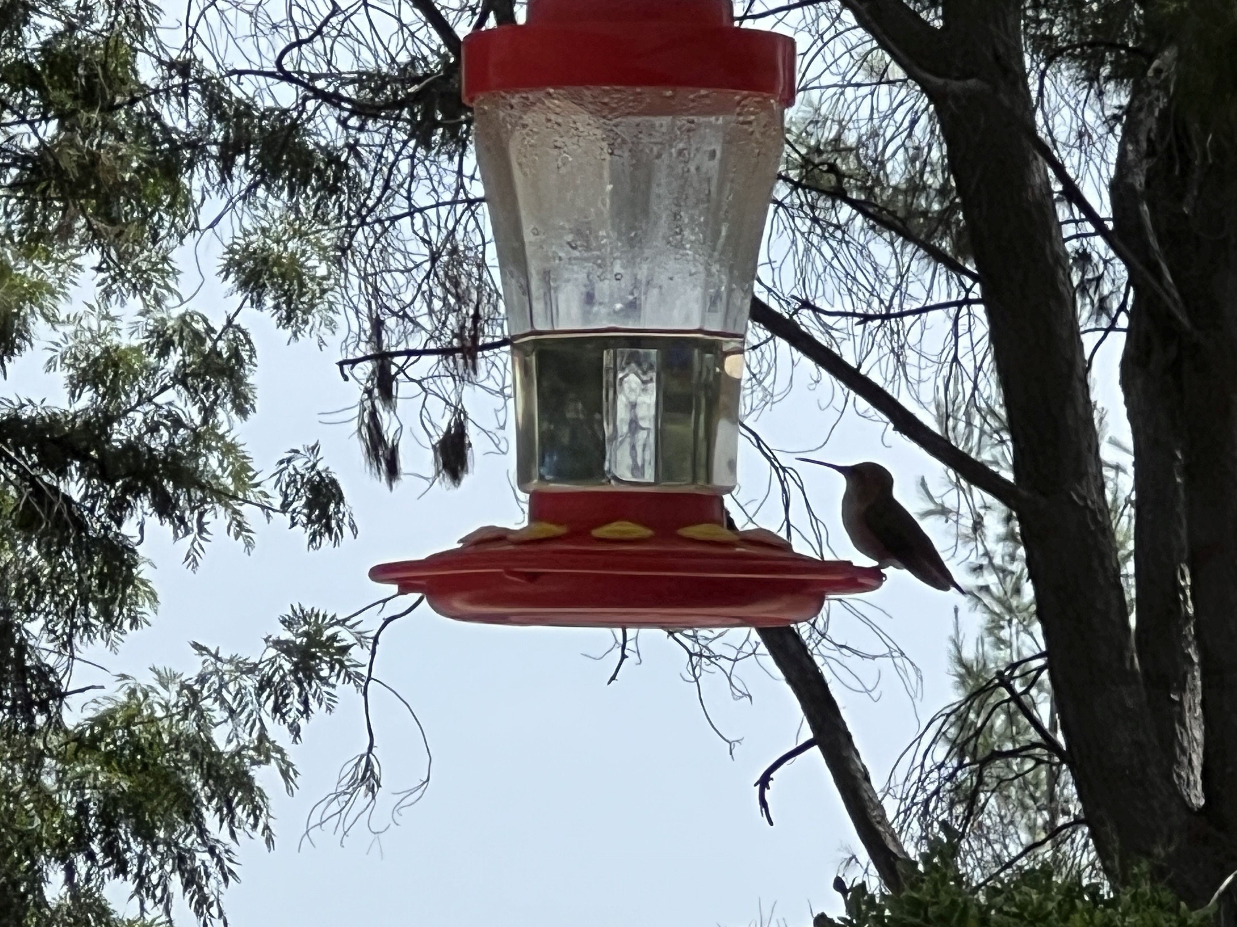 I do wonder if the others are smart enough to gang up on him. It does seem that sometimes a half dozen or more will swoop in and take turns distracting him while the rest grab a quick bite. I have doubts that they’re really strategizing and planning. They’re beautiful to look at , but their brains are only theeeeeese 🤏🏻 big!