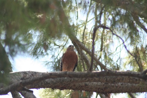 Earlier this week there was a pair of red-shouldered hawks flying overhead, screaming, upsetting our local pair of red-tailed hawks, who promptly drove them off.