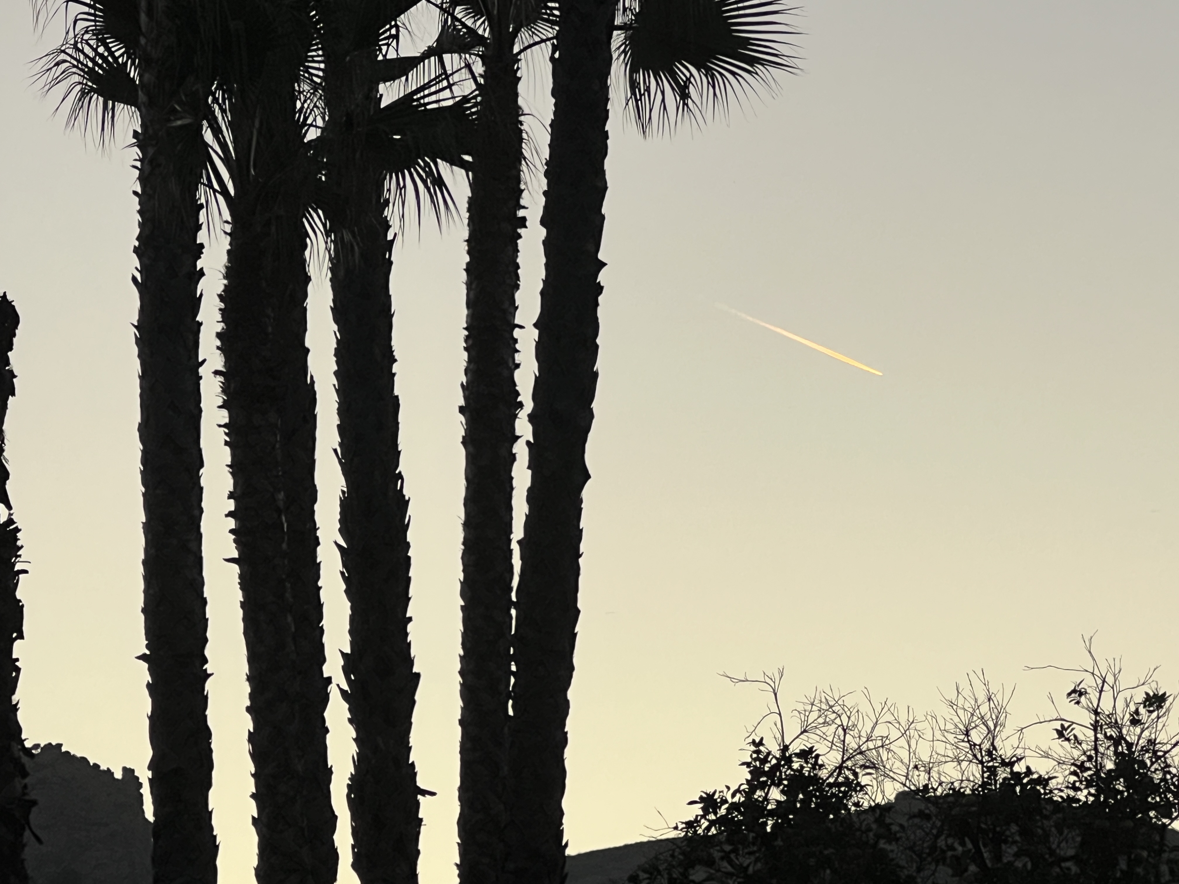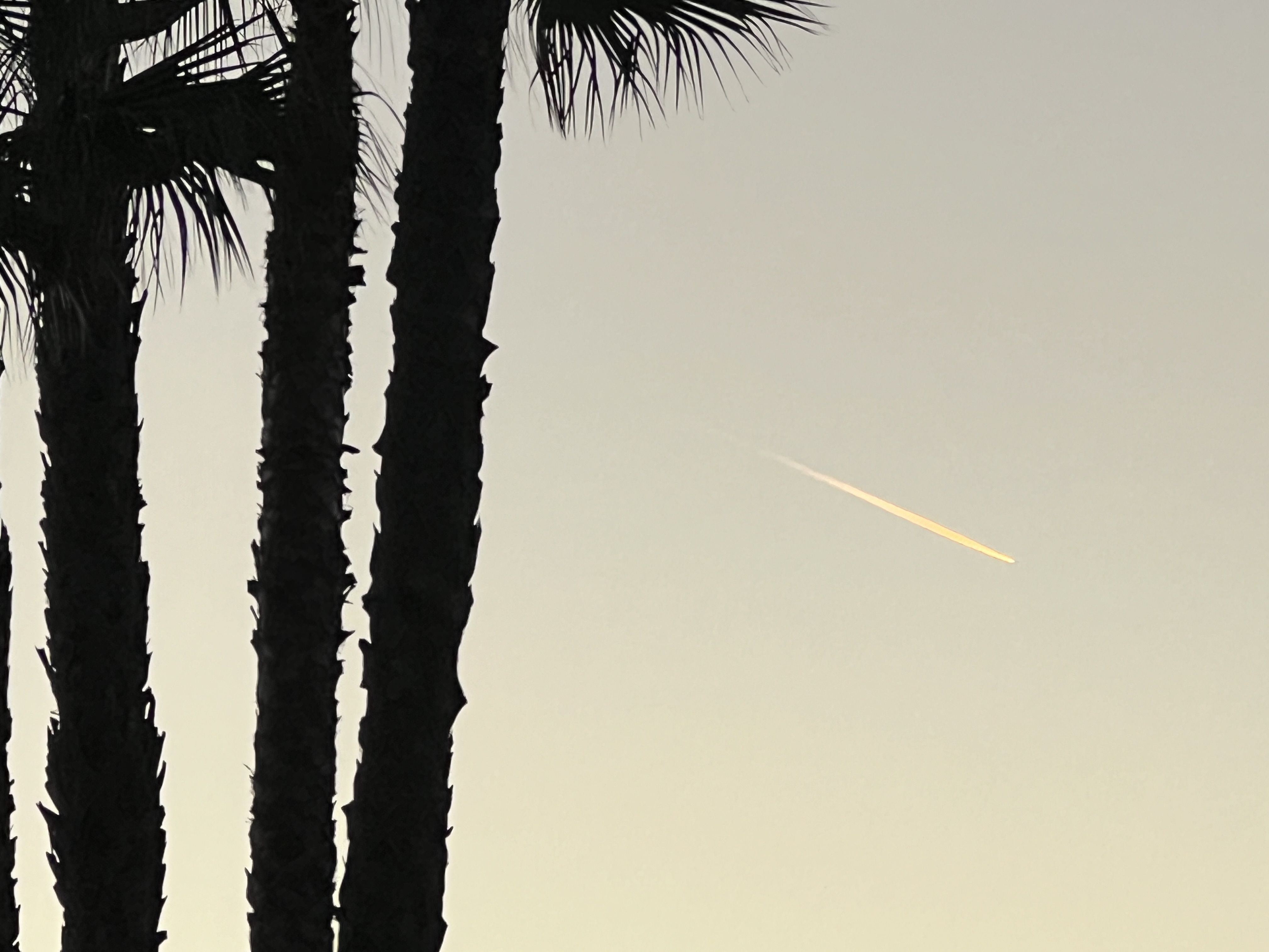 Sunset tonight, off the coast of Ventura, approaching Santa Barbara, heading northwest at 38,000 feet.