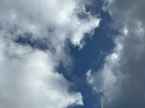 So today I enjoyed looking at the clouds, feeling the breezes, watching the red-shouldered hawks fighting with the red-tailed hawks, and laughing at the squirrels and mourning doves hiding from both.