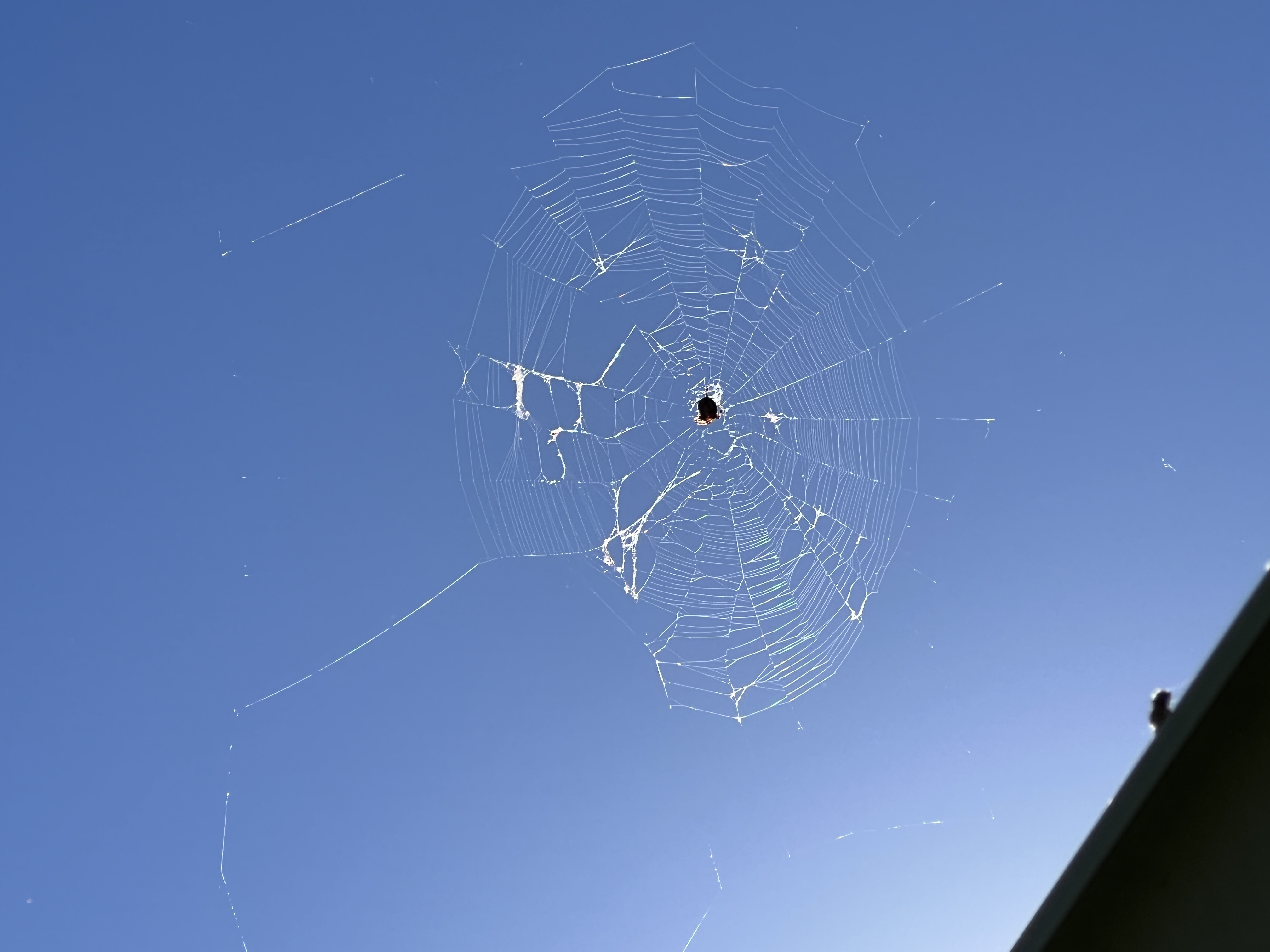 It’s been moderately windy here for the last couple of days, so the web must be pretty sturdy to not get torn apart by either the tugging of those cypress trees as they sway in the wind or from the wind itself.
