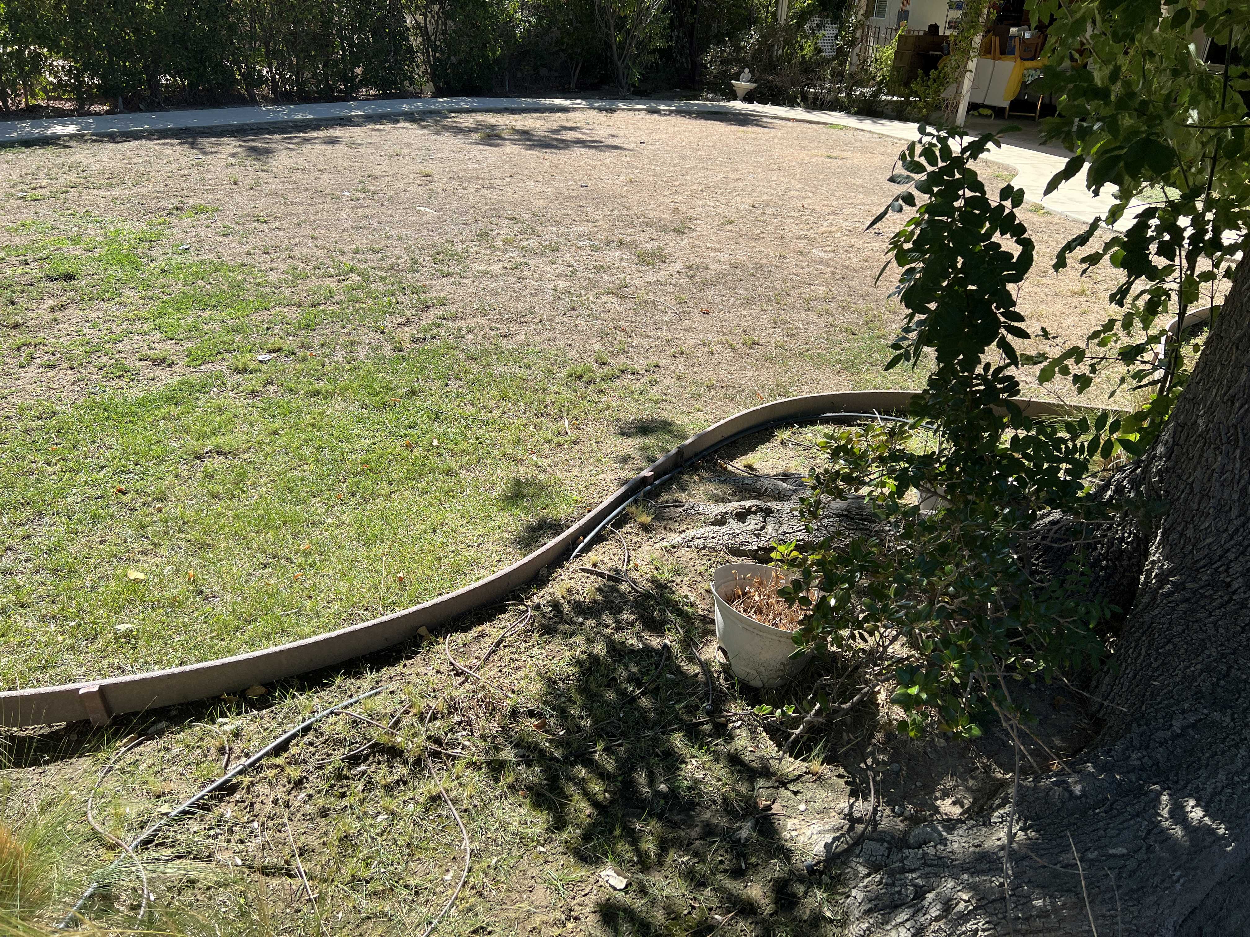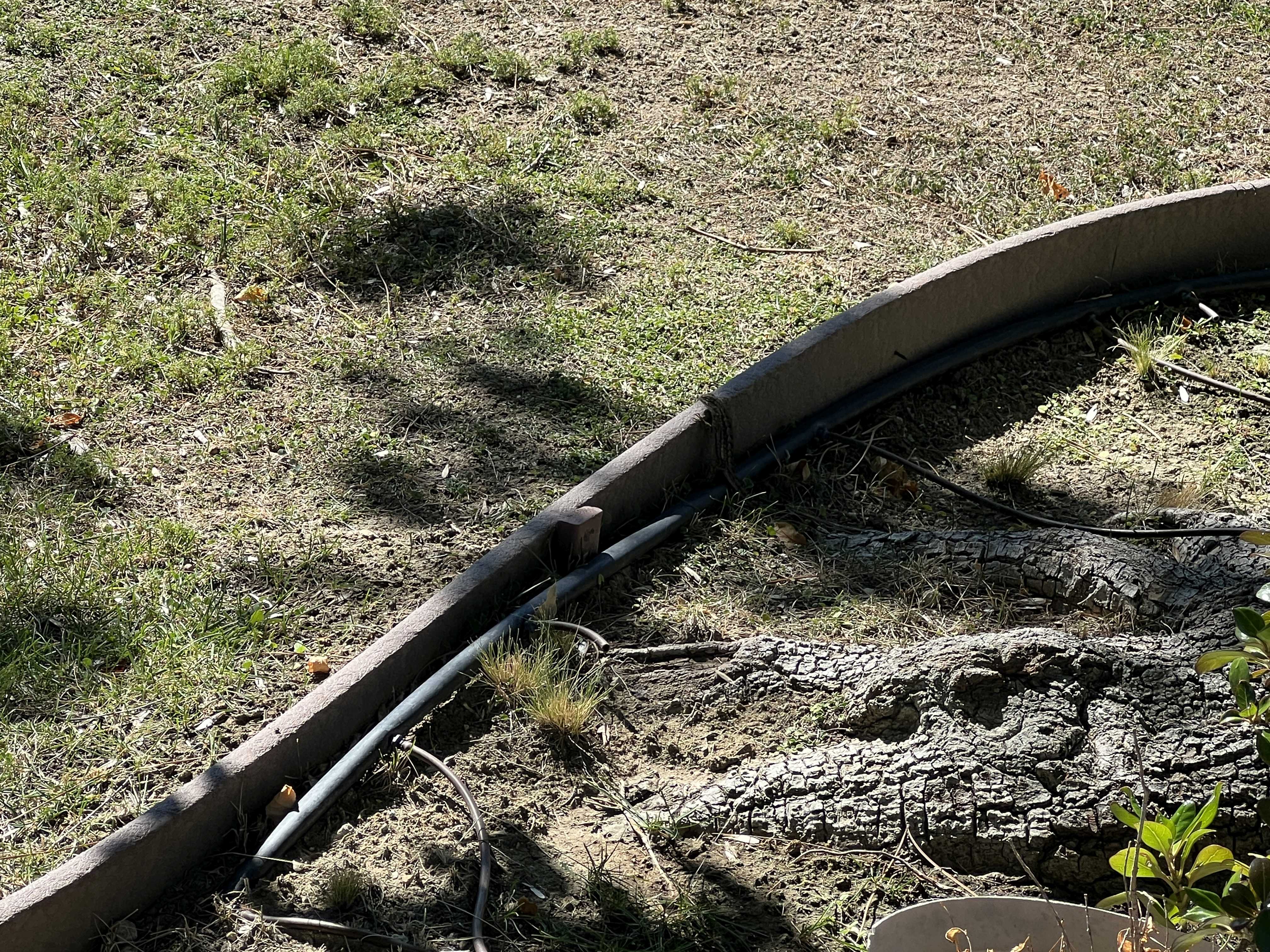 You can see in the other photos that the roots of the big tree are just a couple inches behind him. As soon as I twitched, he was off the edging and onto that big root, where he blended in almost perfectly. Another twitch by me and he as climbing up the tree and making his escape.