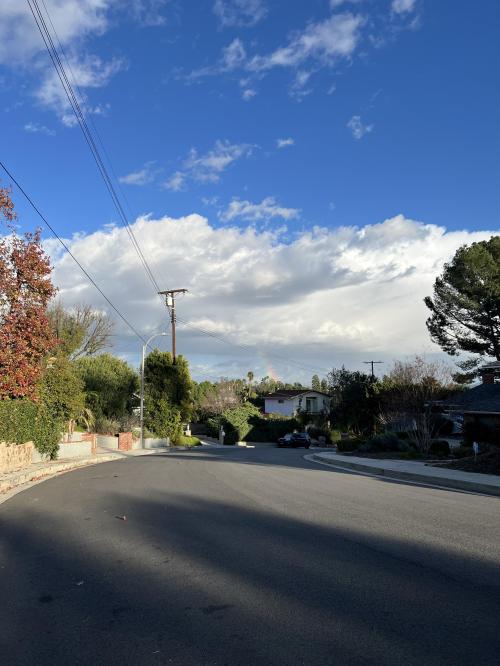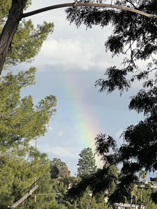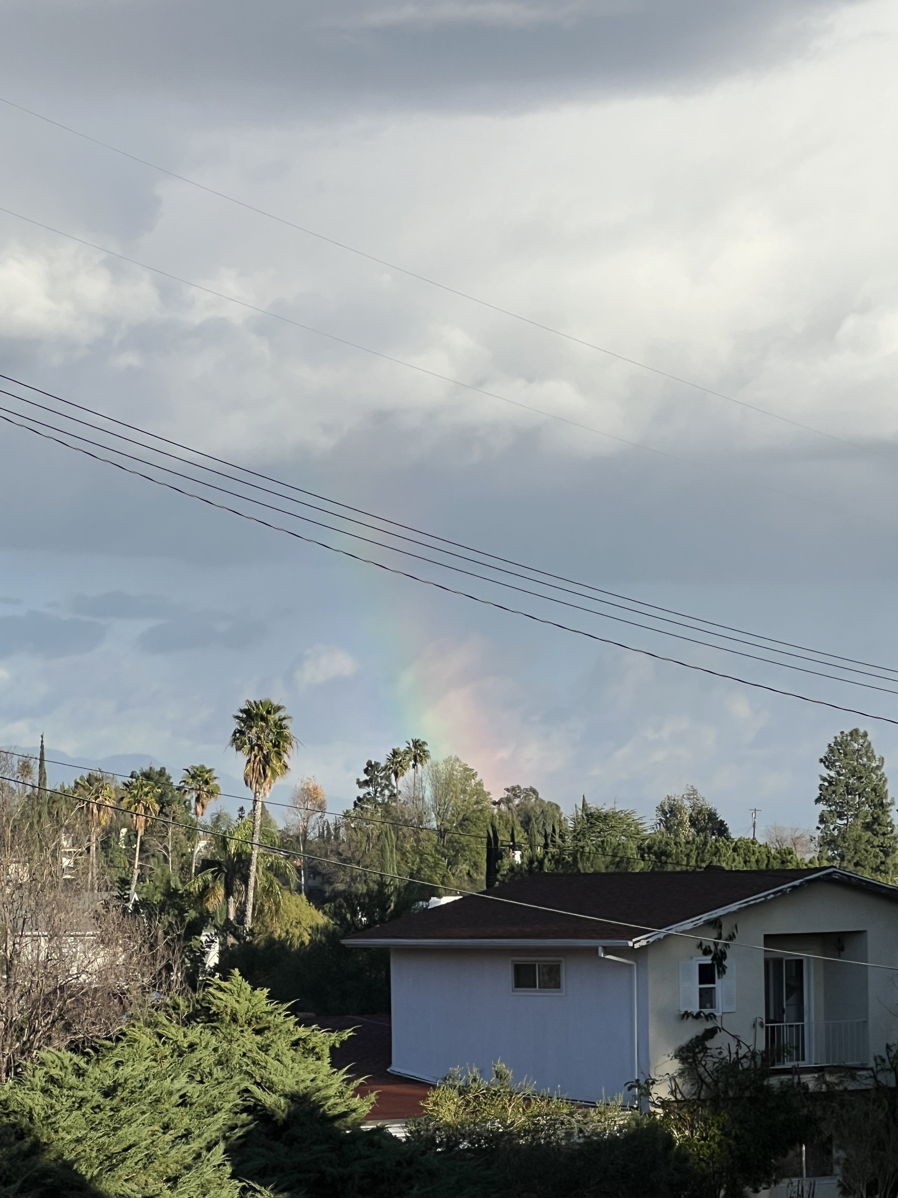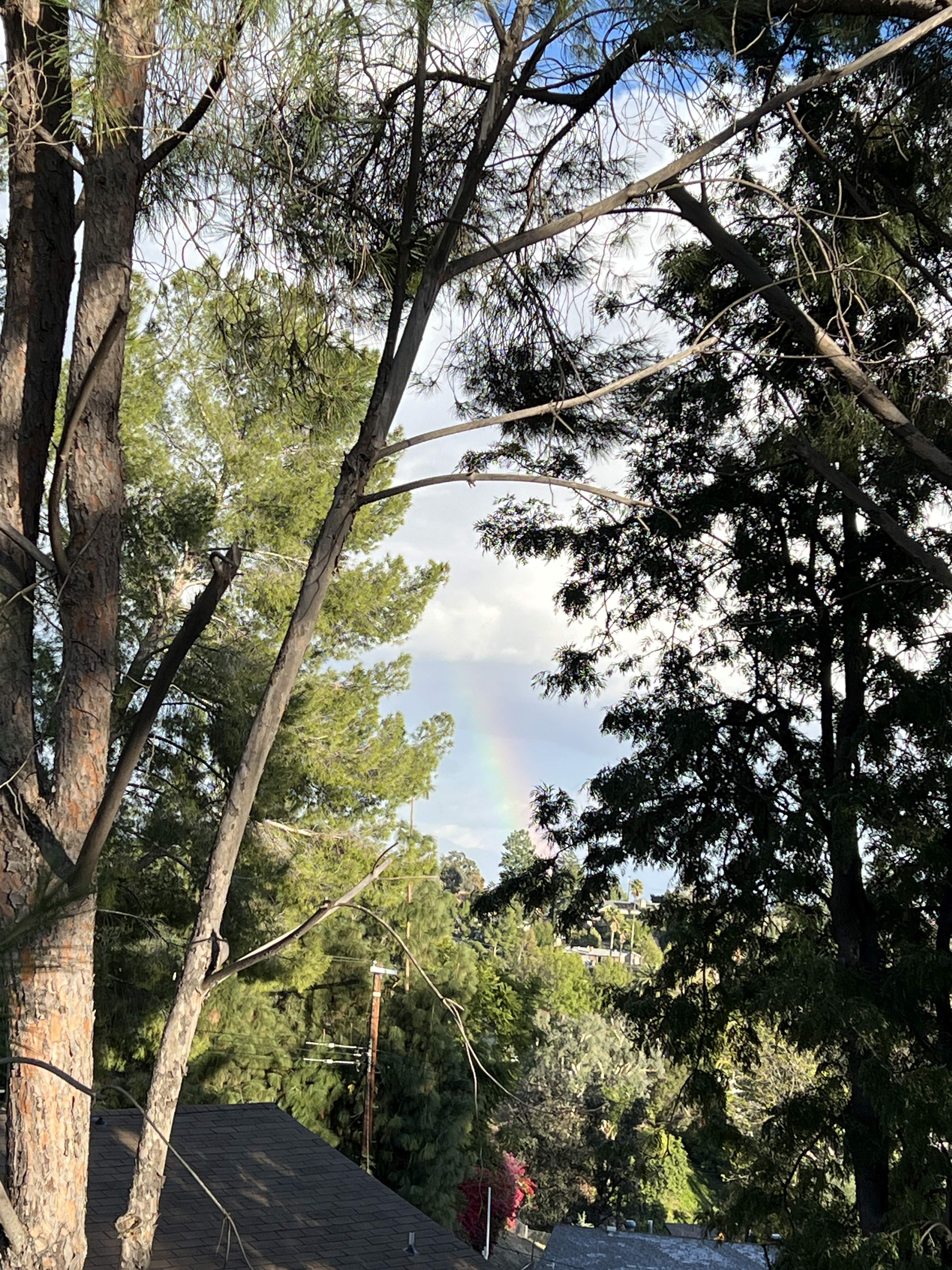She had been watching for a bit from closer to Downtown LA and had a spectacular view of a full 180º rainbow. I later saw that others posted pictures on social media of a full 180º double rainbow over West Hollywood.