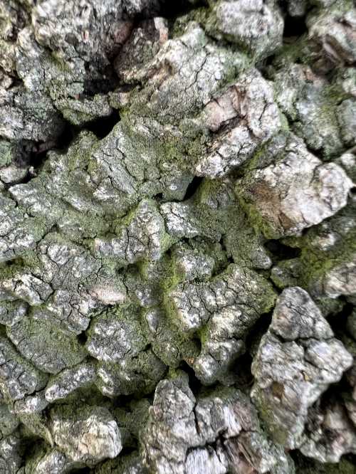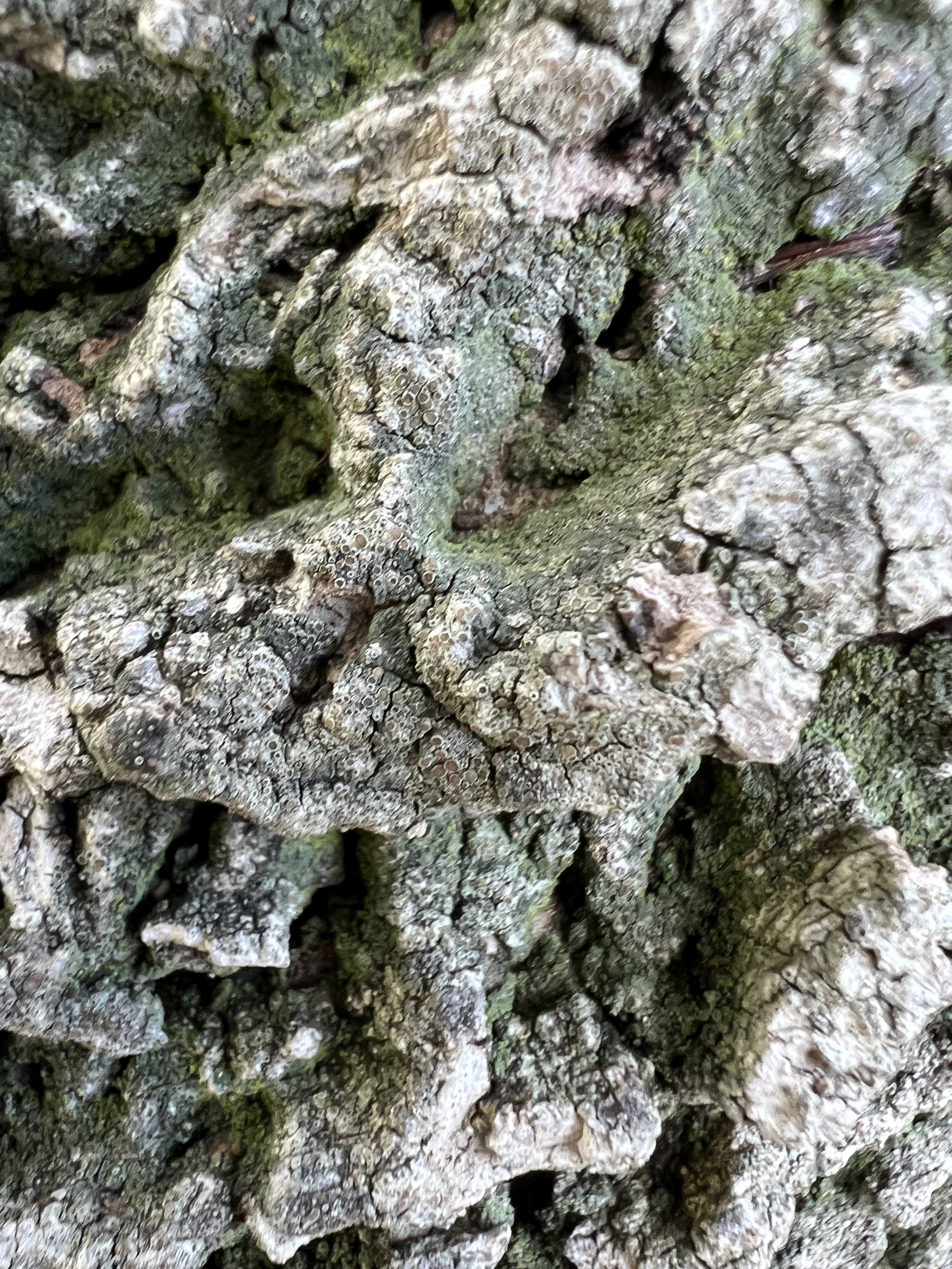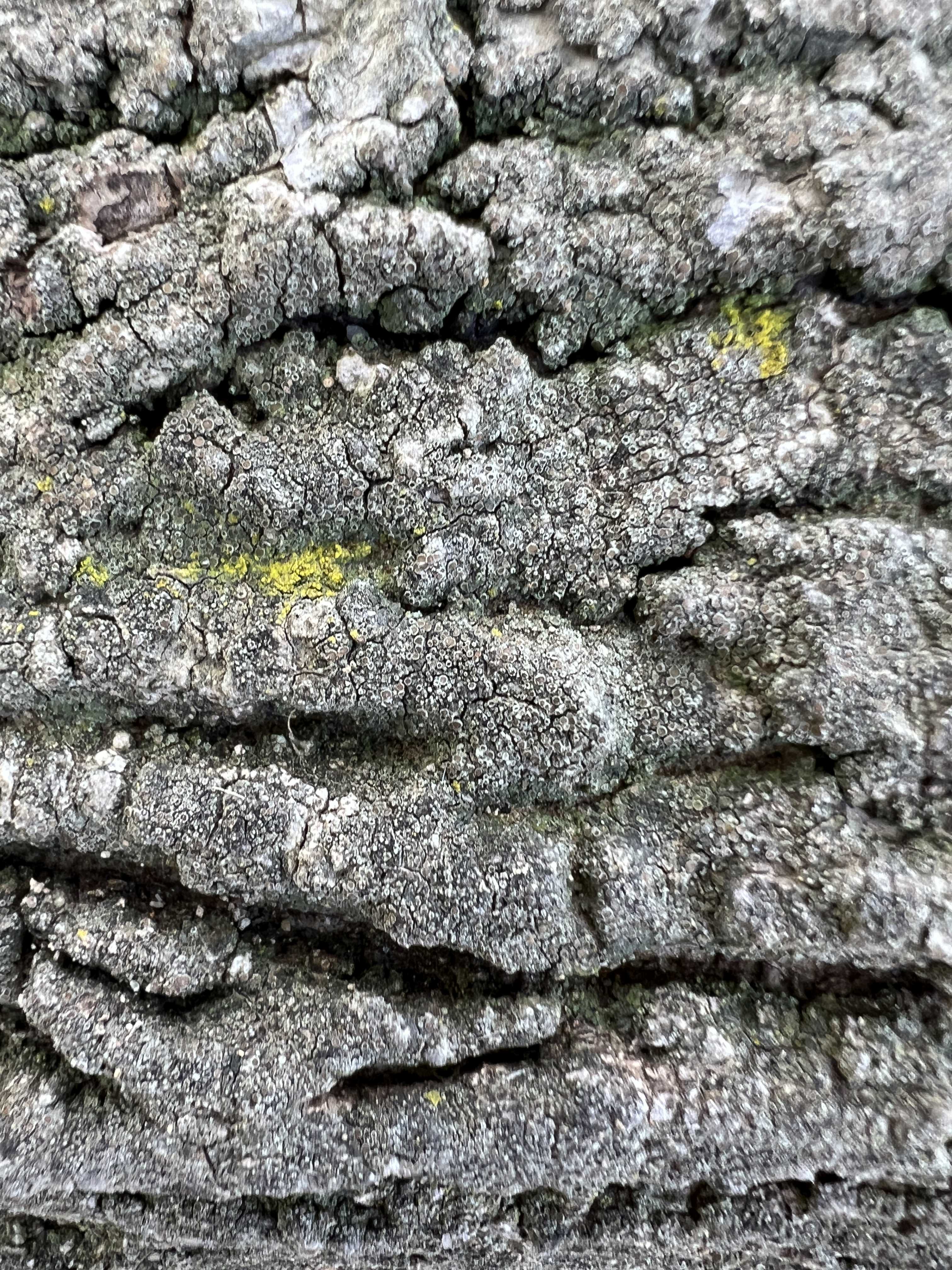 Here there’s some sort of structure that I didn’t see before, especially across that ridge of bark in the middle. It looks like little circles or pox marks.