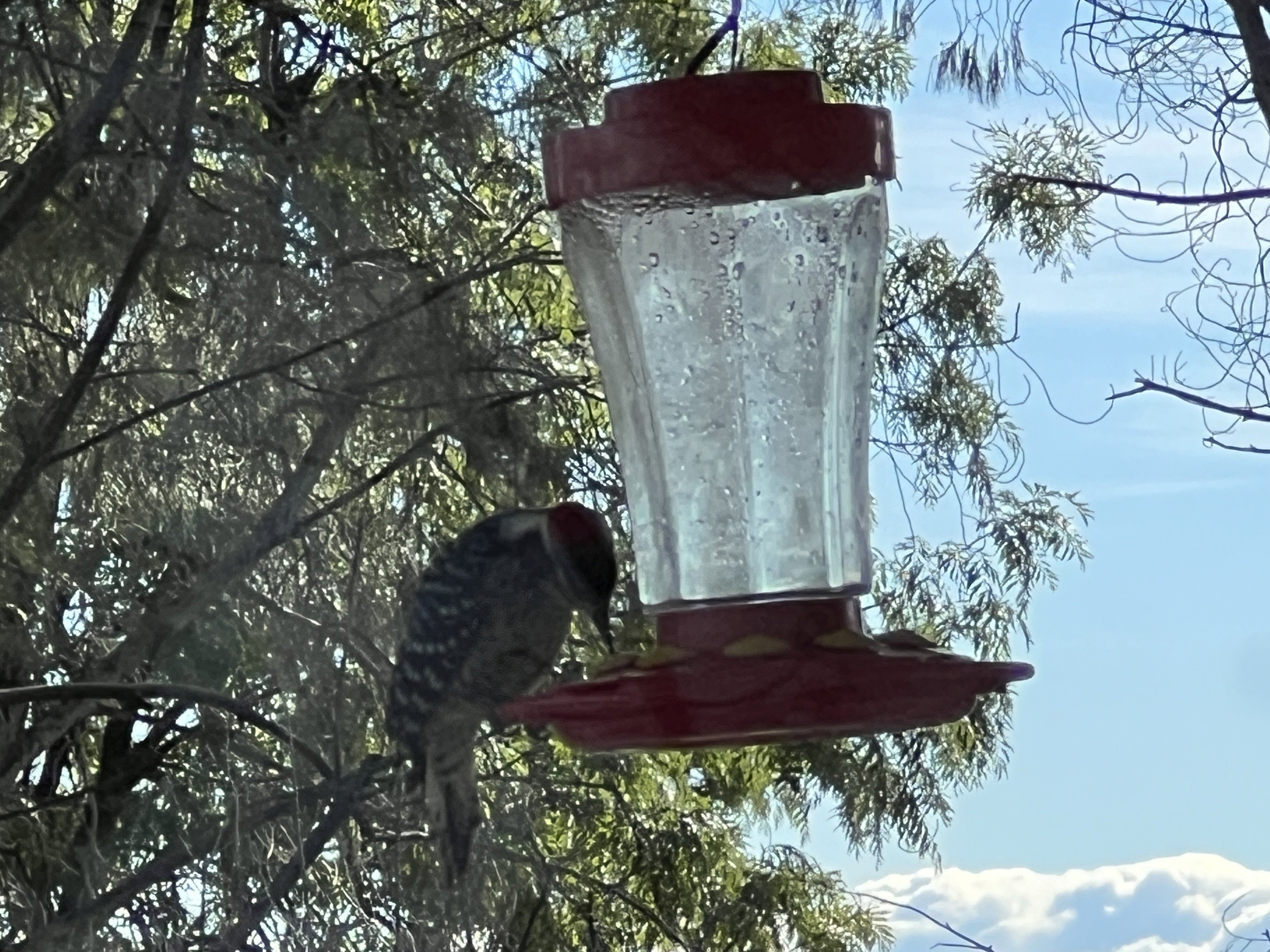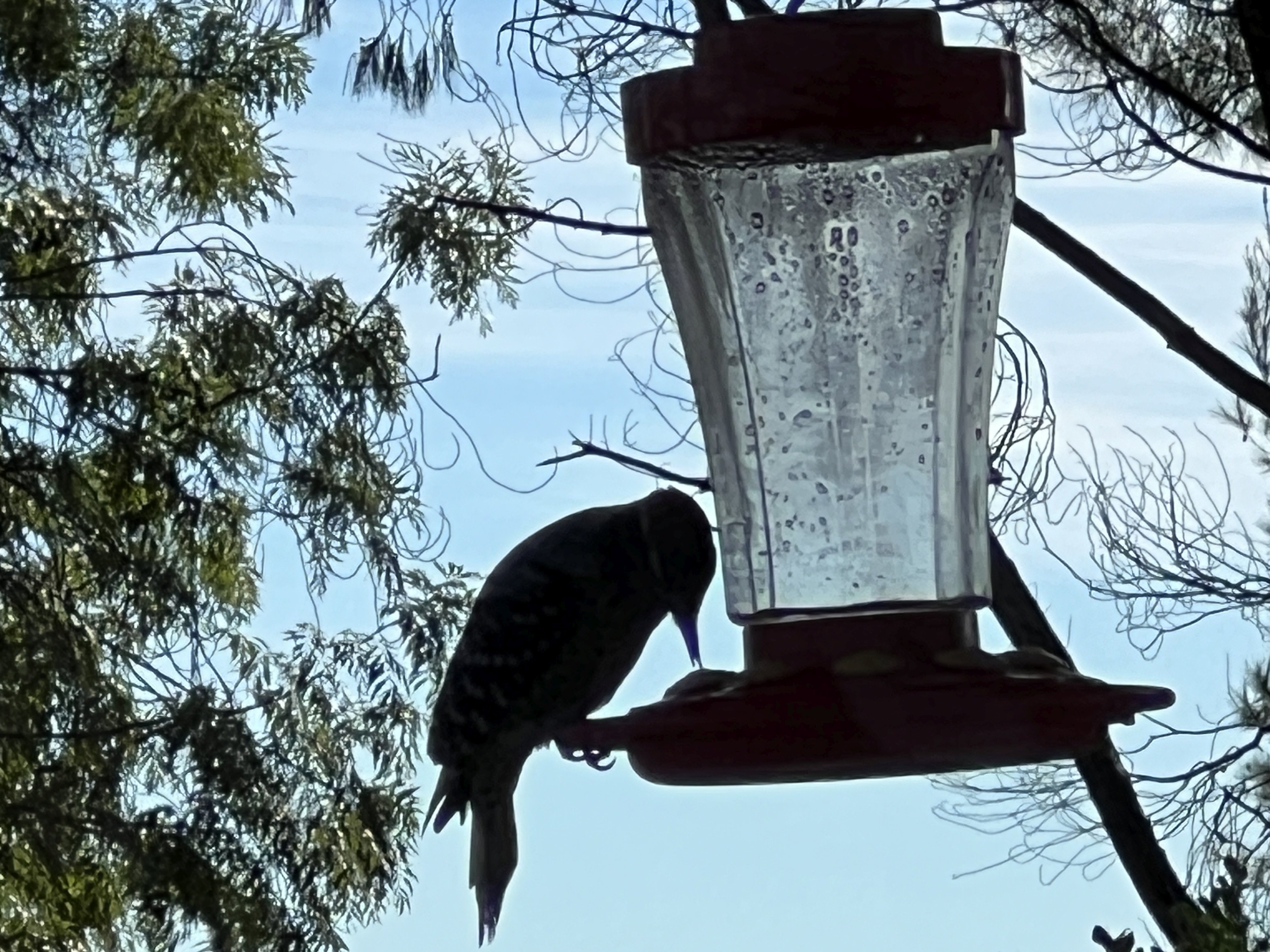 It took its time and as you can see, it pretty much cleaned out the feeder. There’s another feeder around the corner that seems to be still left to just the hummers, so they’ll live until I can get this refilled.