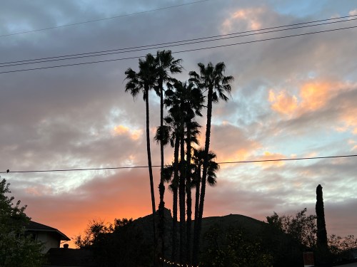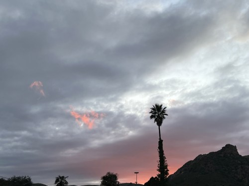 And then it was gone. Almost – I caught just the slightest trace of color to the left of that palm tree crown. (And then I had to climb back up that hill to get home!)