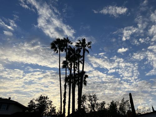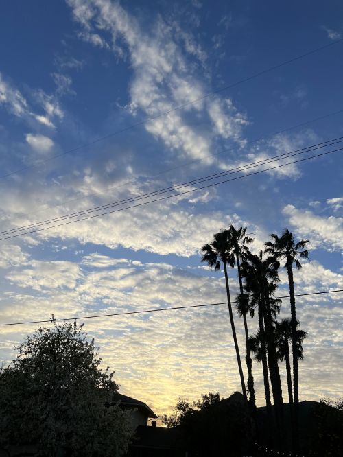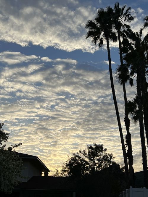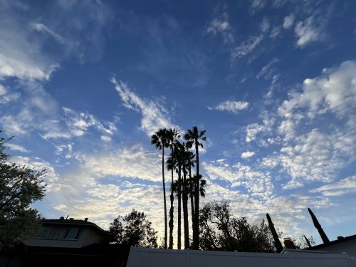 We’re looking hard a houses up in the high desert someplace. The sunsets and sunrises there can be even more spectacular (see these, for example), but I hope I can find a place with a couple of palm trees to add some character to that horizon while the sky’s doing tricks.