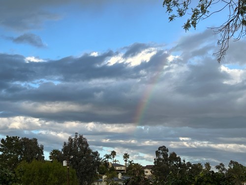 It wasn’t a full rainbow. Over to the right it was black as night as that thunderstorm had moved a bit south. But to the north, for a minute…