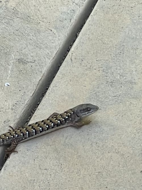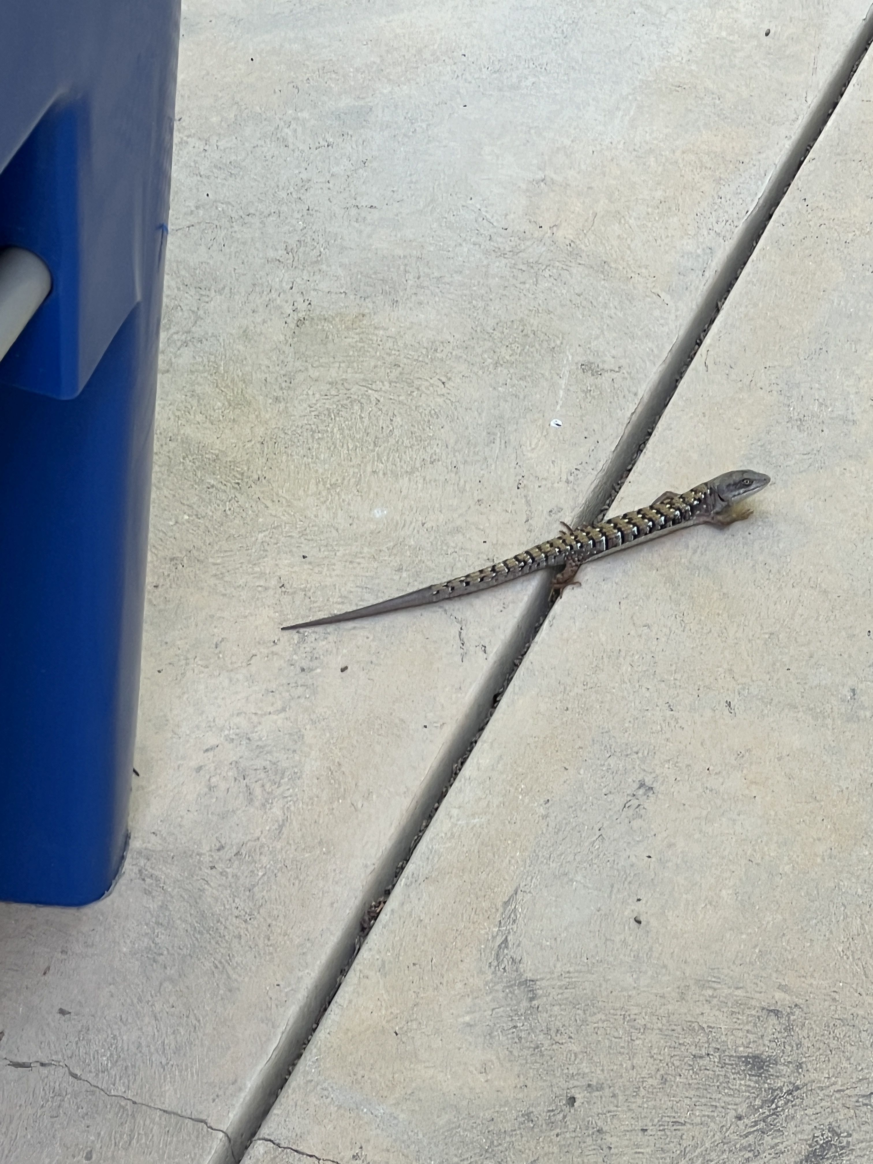 Then I found this guy basking in the shade on the hot concrete next to the recycling bin. That’s NOT a Western fence lizard like the others.