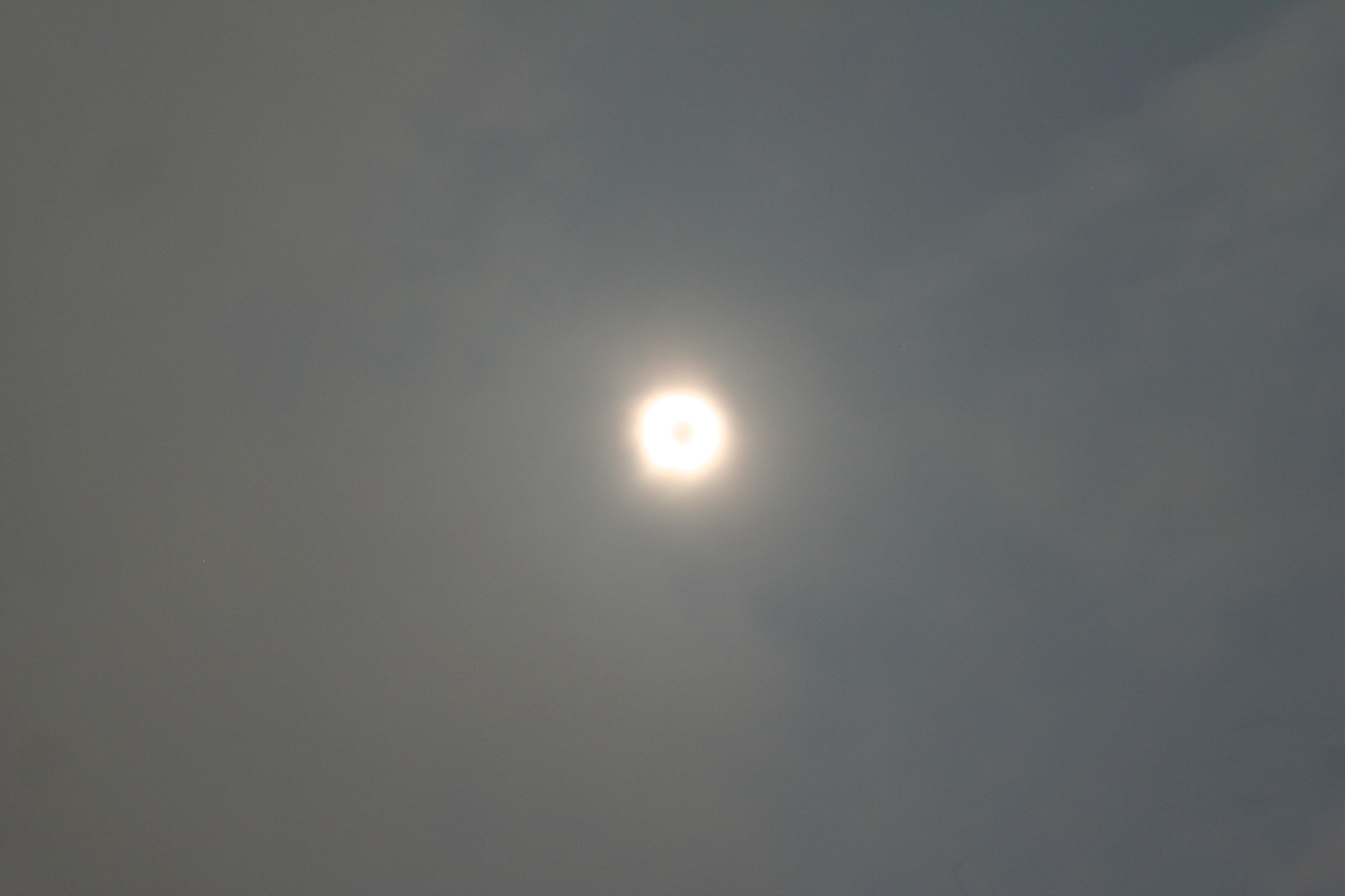 About six minutes after totality ended, the clouds thinned enough for a few seconds to catch the post-totality partial phases. We saw much less of the partial phases after totality than we had before totality, the clouds being much thicker and lower.
