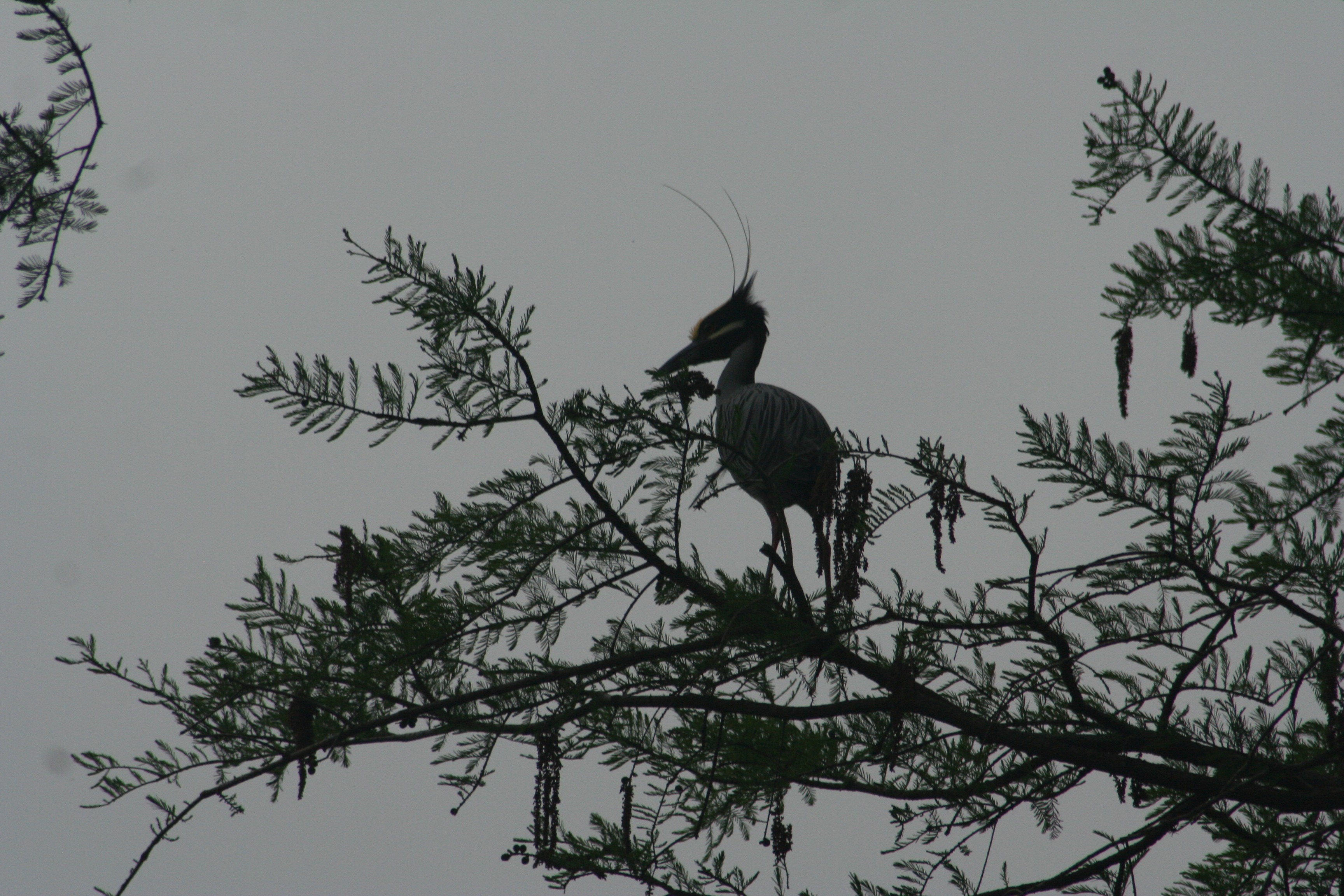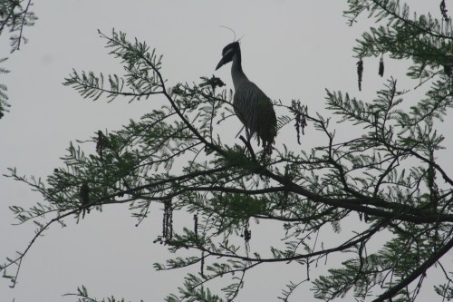 Landing in this tree overhanging the river, sort of like a large, flapping, B-52 trying to do a carrier landing, was this dinosaur. A heron or stork of some sort was my guess.