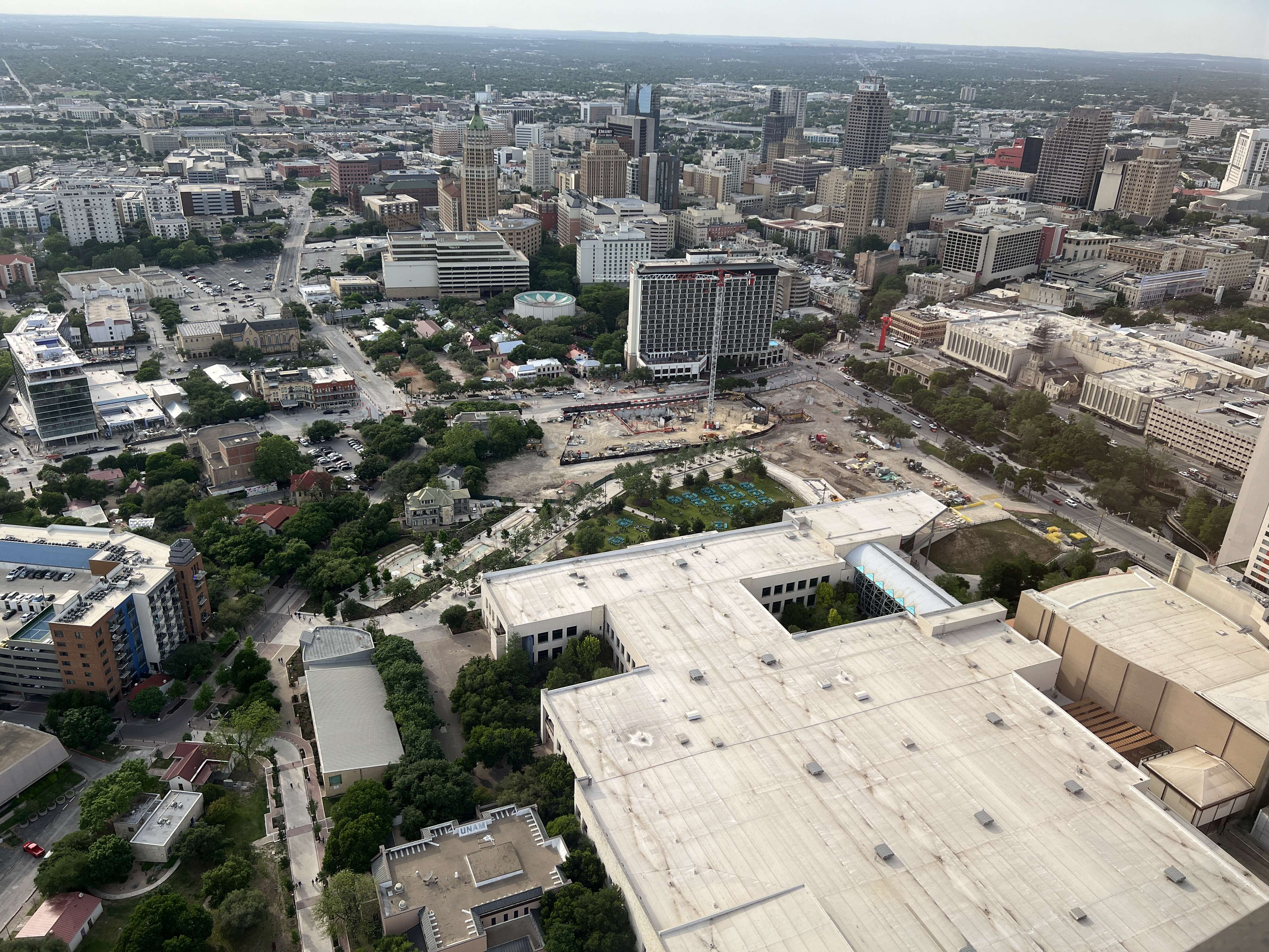 From up at the top, you can see that the convention center is HUGE. About half of it can be seen in the bottom right of this picture, the white-roofed structure. There are also a gazillion hotel rooms within a block or two. San Antonio pushes hard for the mega-convention trade and is equipped to handle it.