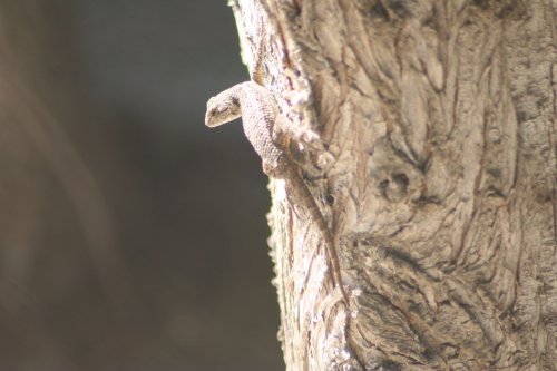 Some days it’s getting warm(er), when it’s not cool and foggy like it was on Saturday. When that happens, the fence lizards come out to sun themselves on the wall and on the sidewalk and wherever they can grab a sunny spot that’s just a quick dash from safety if/when danger (i.e., me or a hawk) appears.