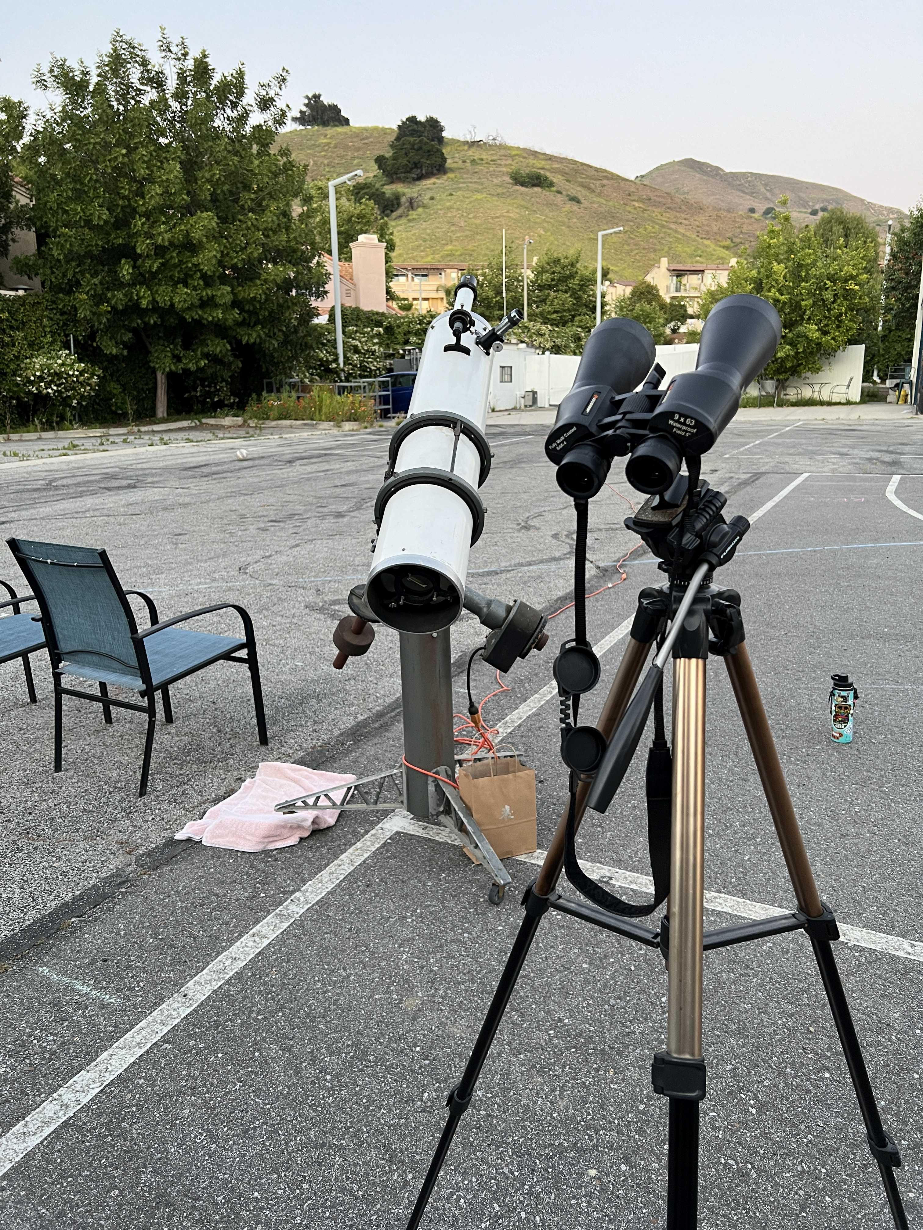 The Younger Daughter is a teacher at a private school here in LA and tonight as part of their end-of-the-year activities they had a sleepover night at the school. She asked if I would be interested in bringing some telescope gear to the school so her students could look through them.