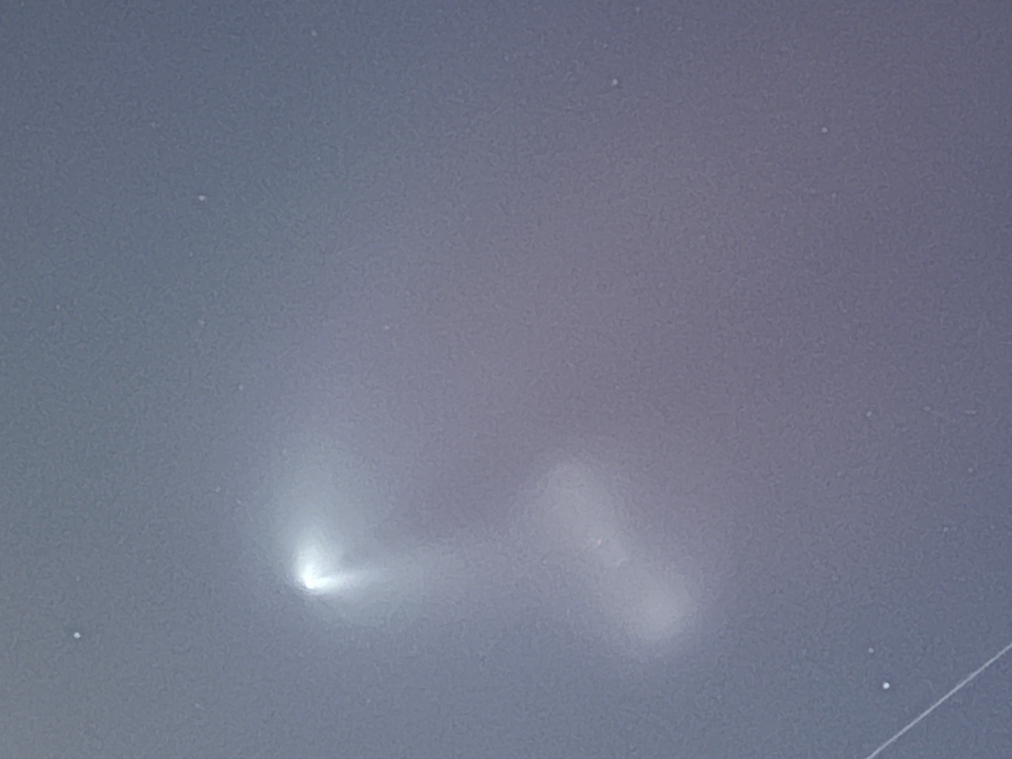 Not perfectly seen here, but we got a decent “jellyfish” effect from the exhaust plume expanding and glowing in the sunlight in the dark sky after sunset.