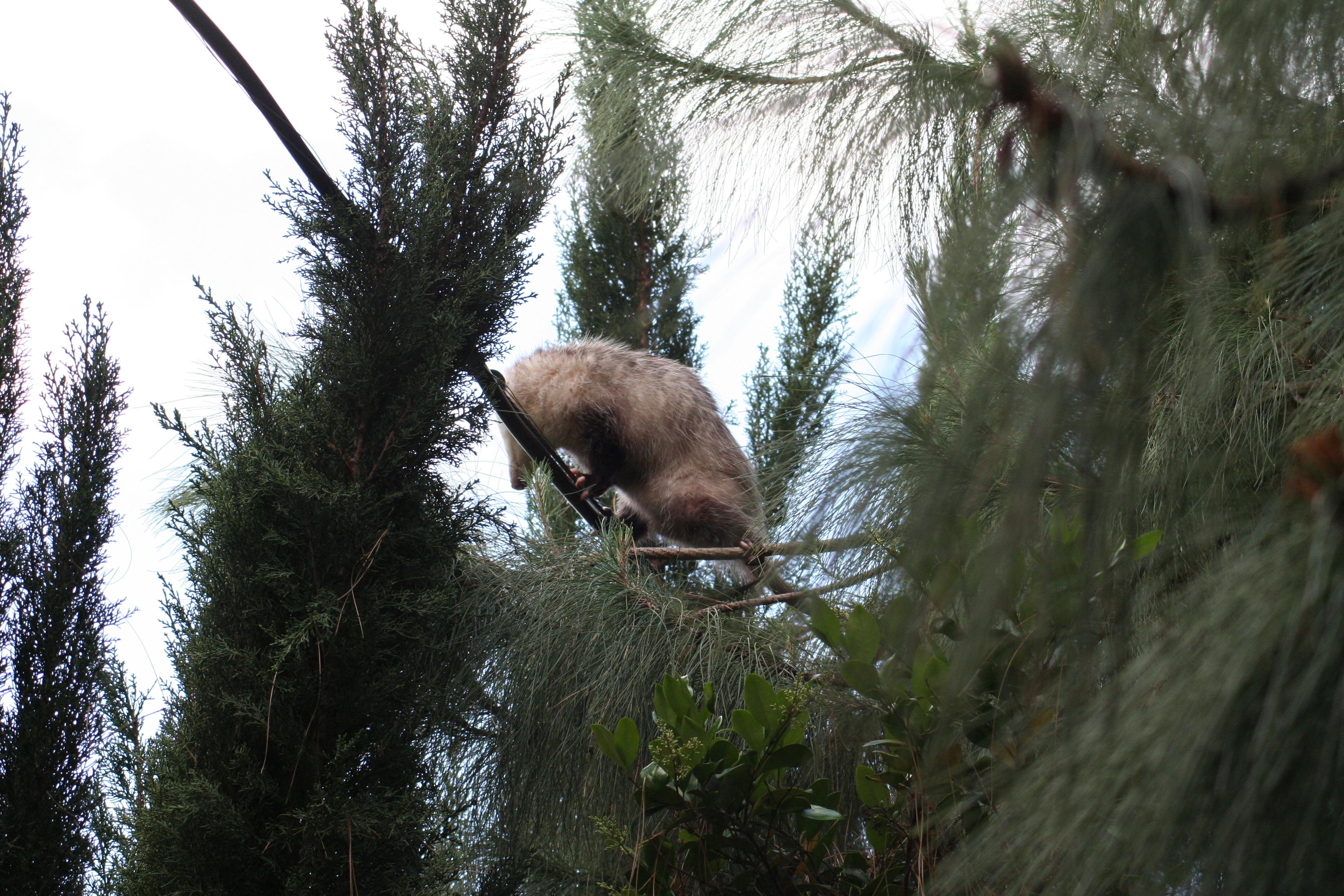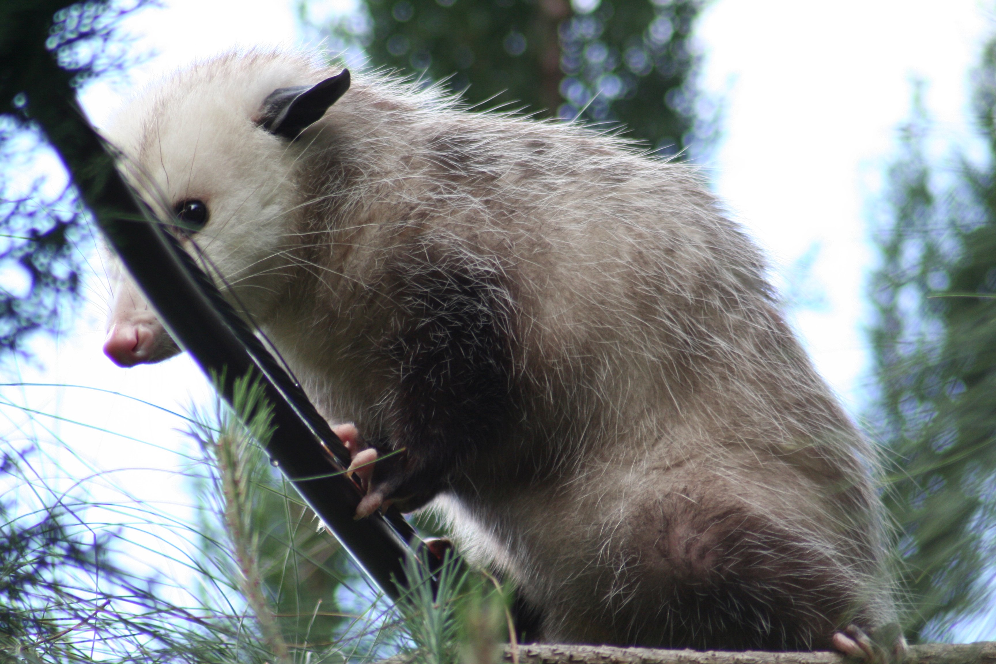 I know that because there was an infamous incident where Jesse, our dog, was going berserk in the back yard one night and we went out in the pouring rain and mud to find her howling and wailing at this one or its twin with a half-dozen or so babies clinging to its back. Jesse had it cornered, about knee high on a tree trunk and that mama opossum was way out of her weight class but (of course!) was going to die defending those babies and all of those teeth were on full display. I got to reach in to grab Jesse’s collar and pull her back in the dark, rain, and mud with the insane, stupid dog going nuts six inches from that muzzle full of teeth. It seemed like a good idea at the time.