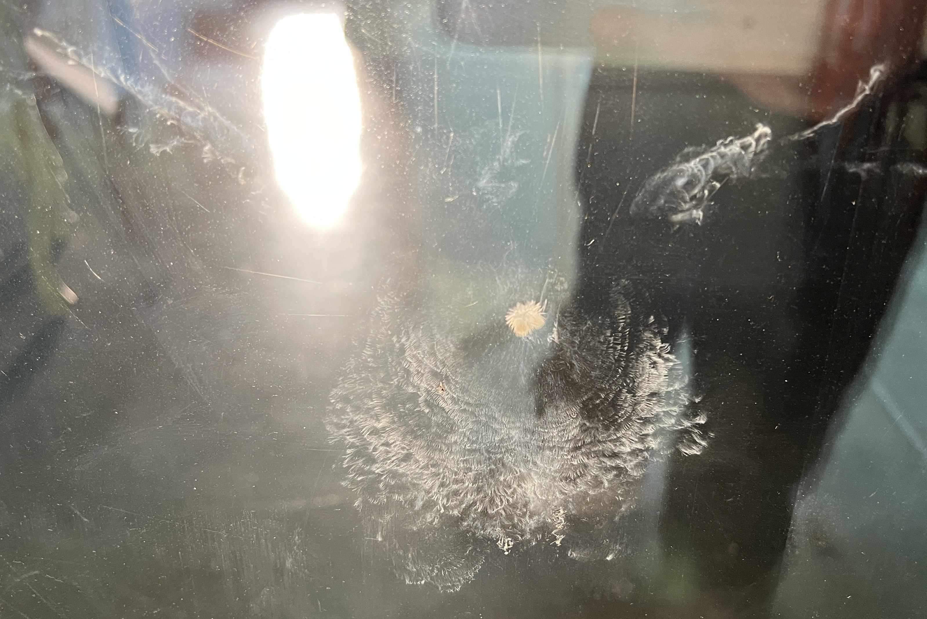 I heard the thump, all the way from the kitchen to where I was still in bed down the hall at the other end of the house. I expected to find another dead mourning dove. But there was no carcass, and at first I didn’t even see a mark on the window.