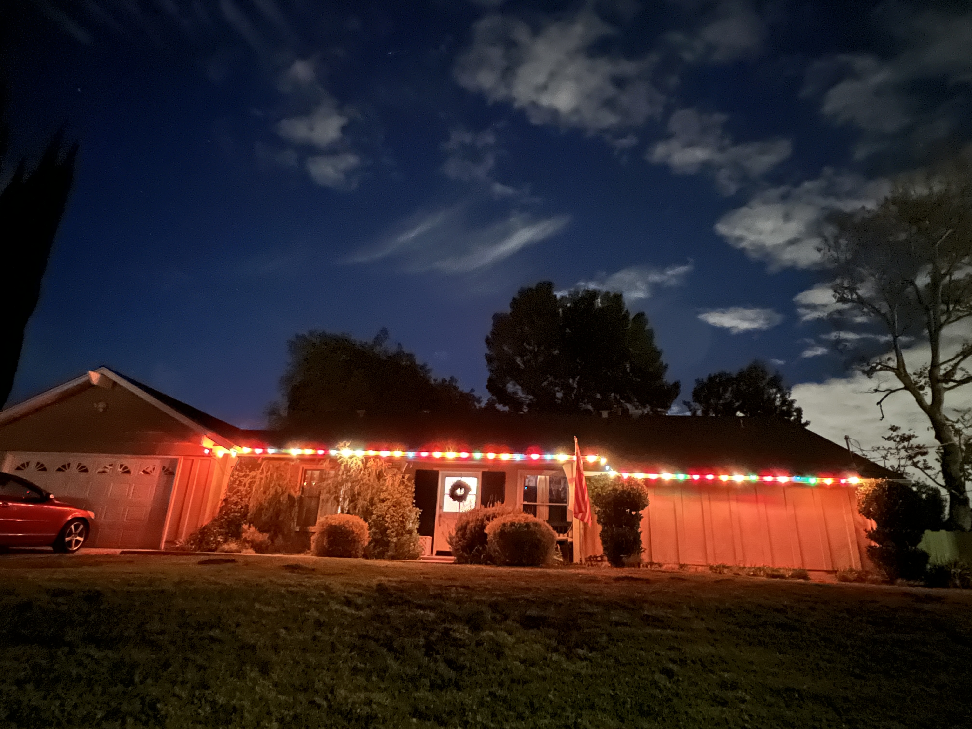 By the time I got done with the last of the electrical work, it was dark. I pushed through to get at least one string of lights up, and I got the wreath on the door, and the Christmas tree and decorations moved from the garage to the living room, but the rest of the lights will have to wait until tomorrow.