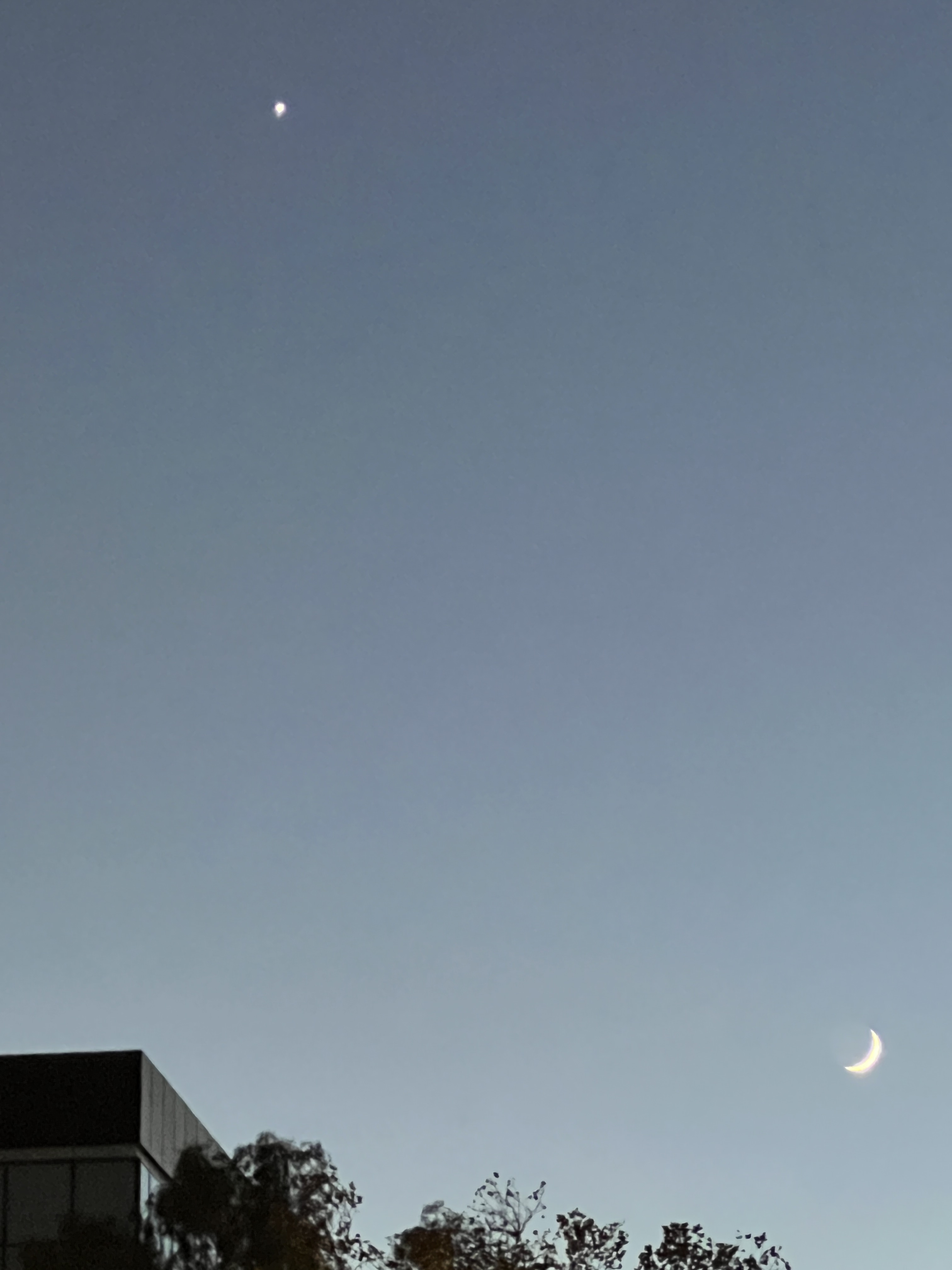 If your western sky is clear at sunset later this week, go take a look. You might also check to see if there’s an ISS pass about sunset, we’re in a period when they’re happening almost every day.