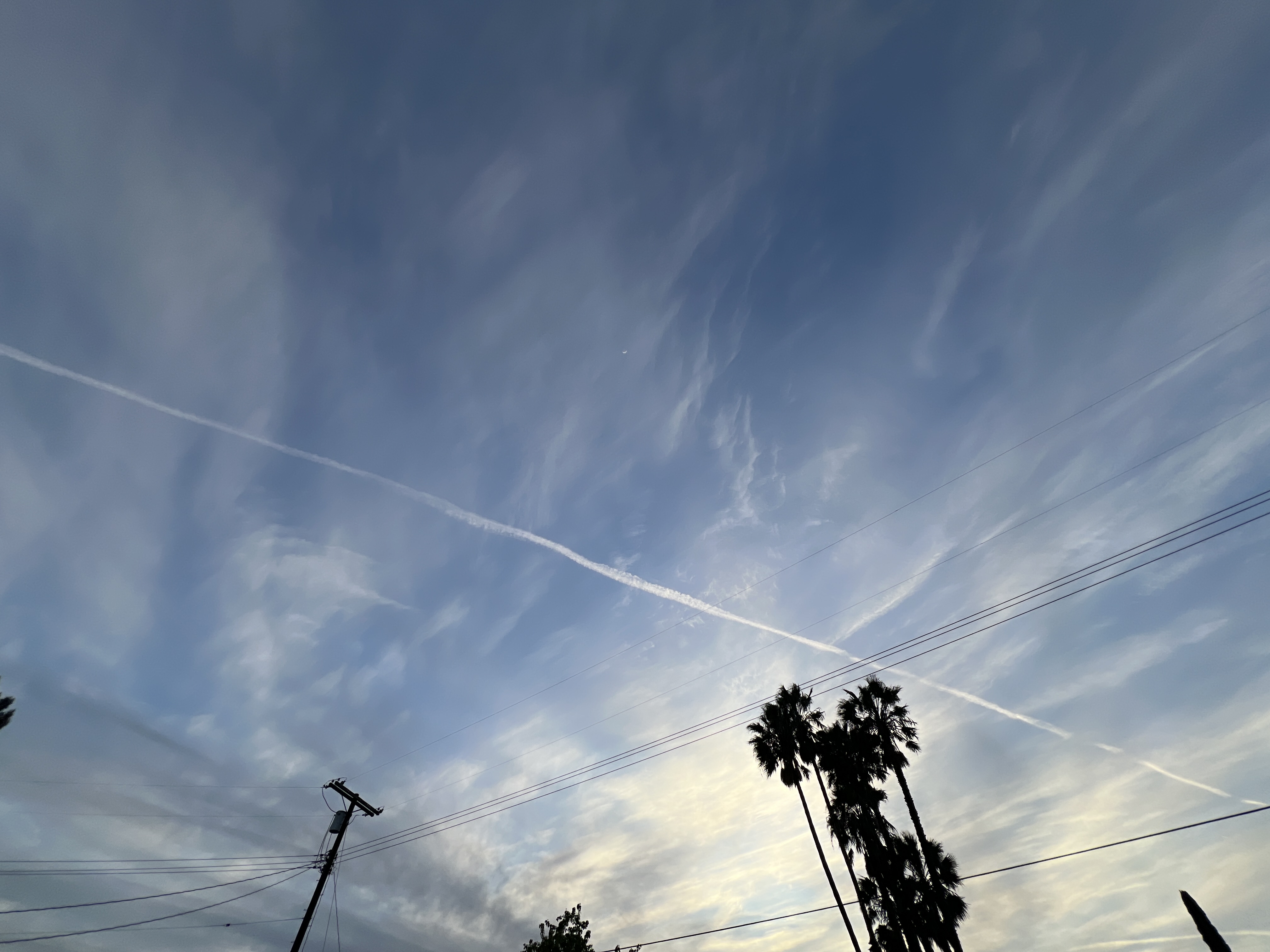 See it? Up there in all of the cloud layers (rain moving in for tomorrow and Thursday) and contrails?