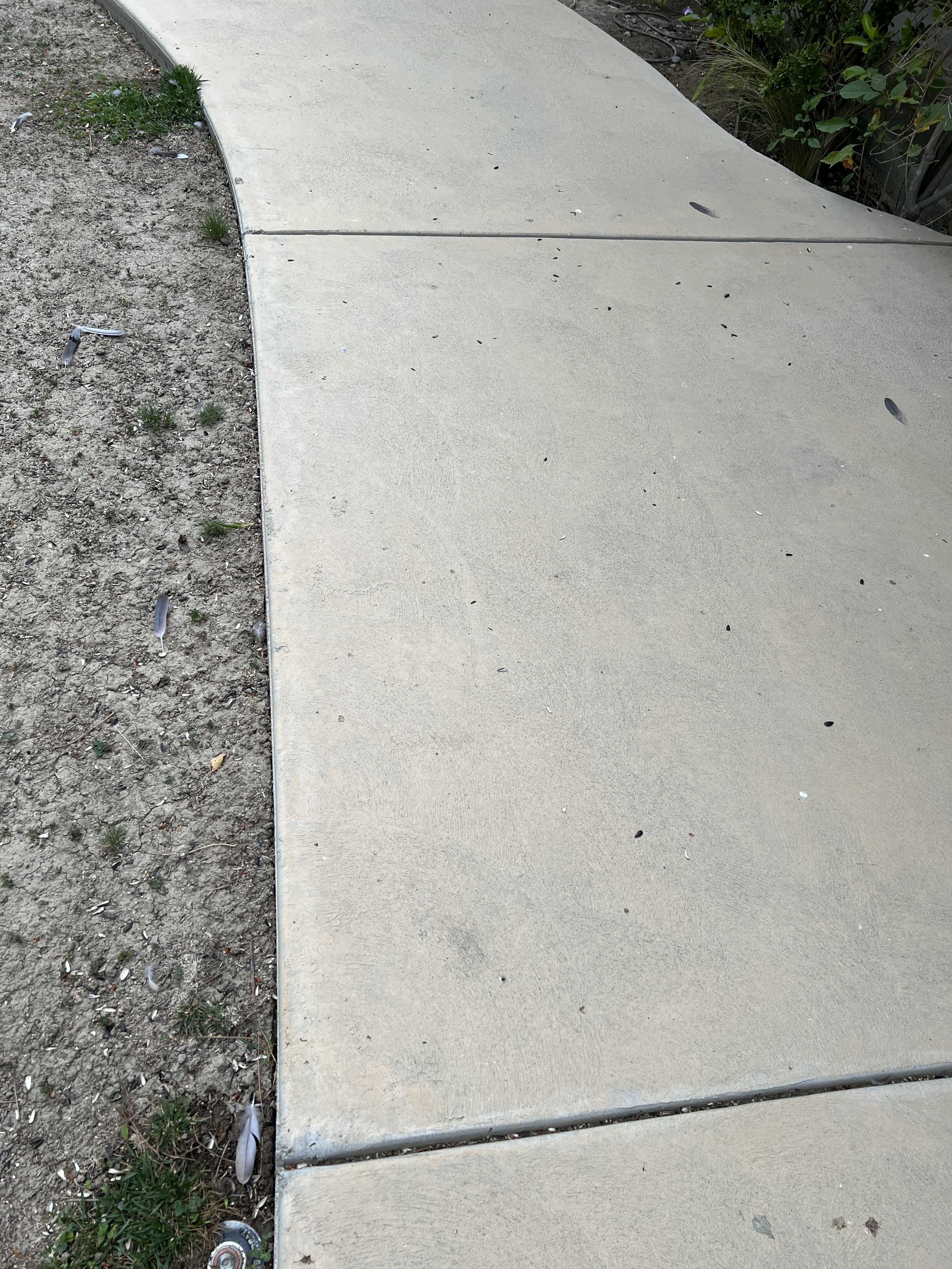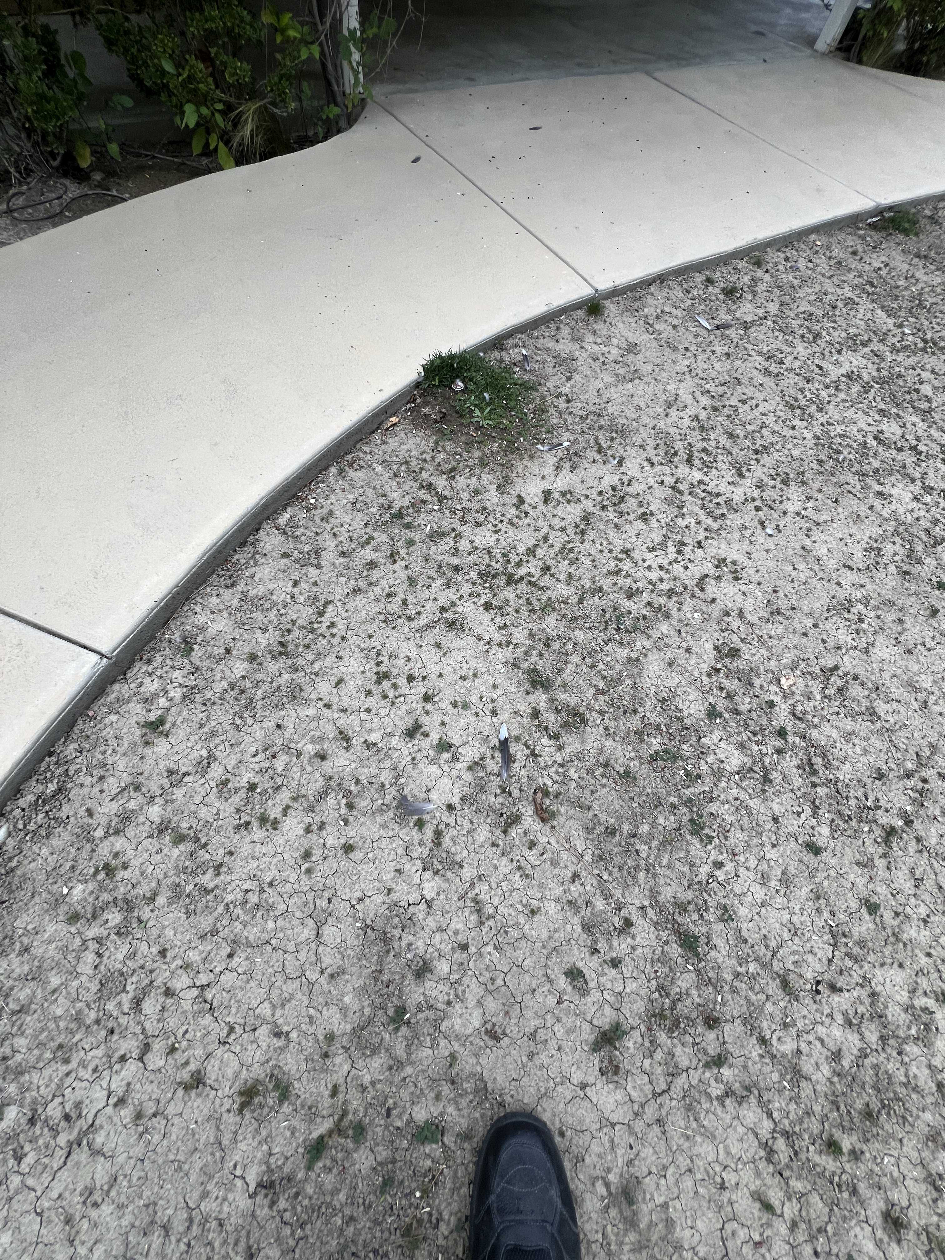 It was only after I had done my lap around the back yard and got back to this point that my brain started to register all of the other feathers, well hidden by their coloration matching the dirt. Aside from the two on the sidewalk, how many can you find on the dirt? (I’ve got eleven so far, but every time I look I seem to find more.)