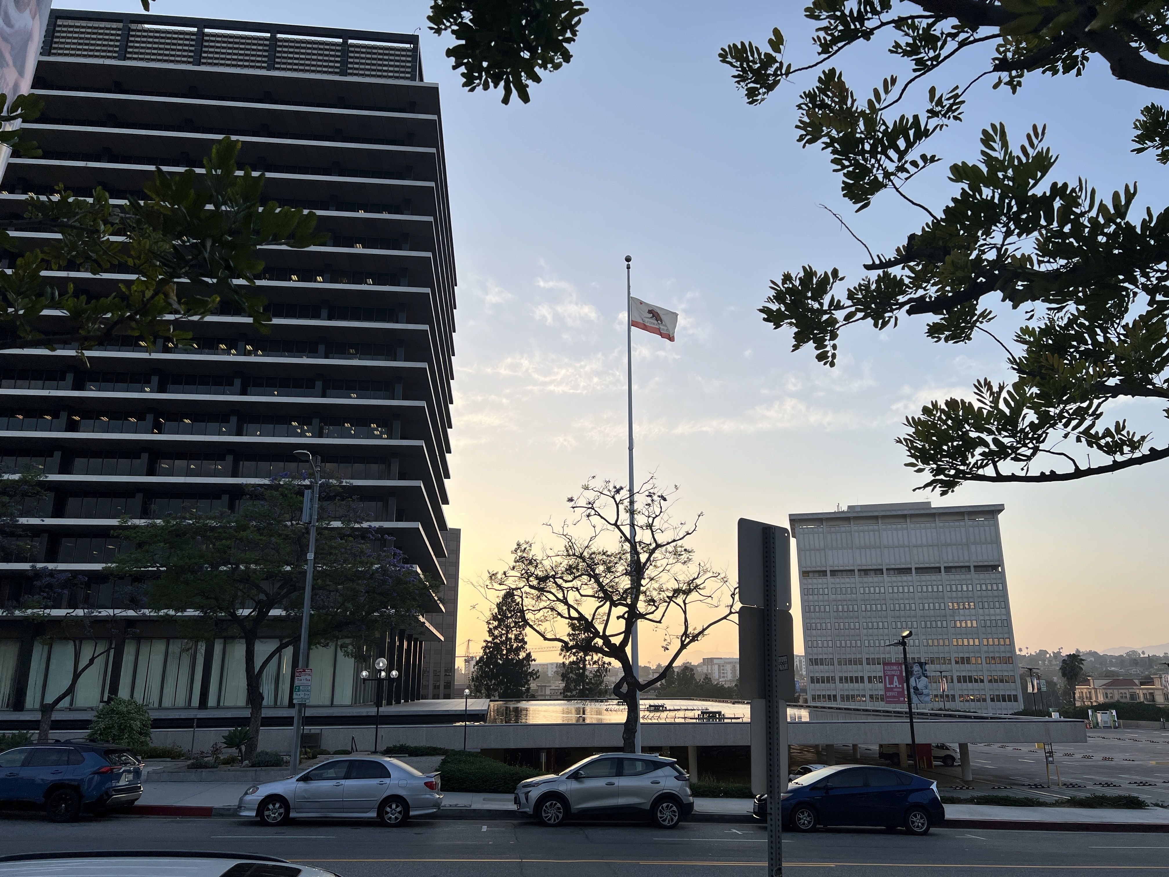 So here’s a picture of the DWP building and sunset from the Music Center last night.