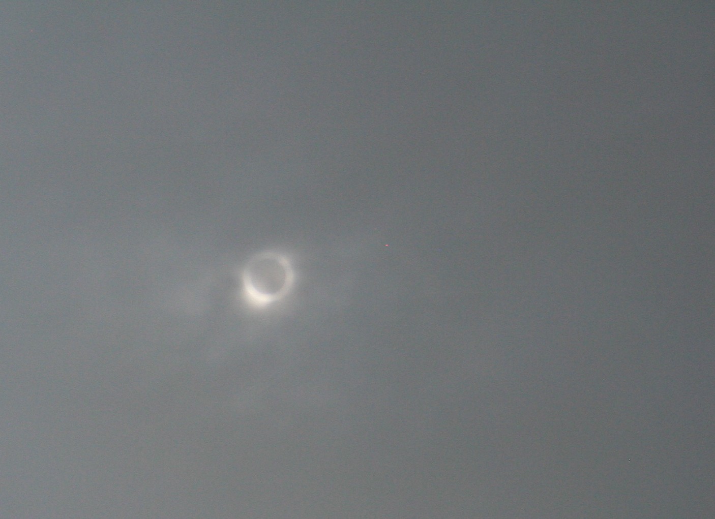 Things are cloudy and the view is murky – but that might be a ray of light peeking out. (Photo from the 2017 total solar eclipse we saw through high, thin clouds somewhere in southeastern Nebraska.)