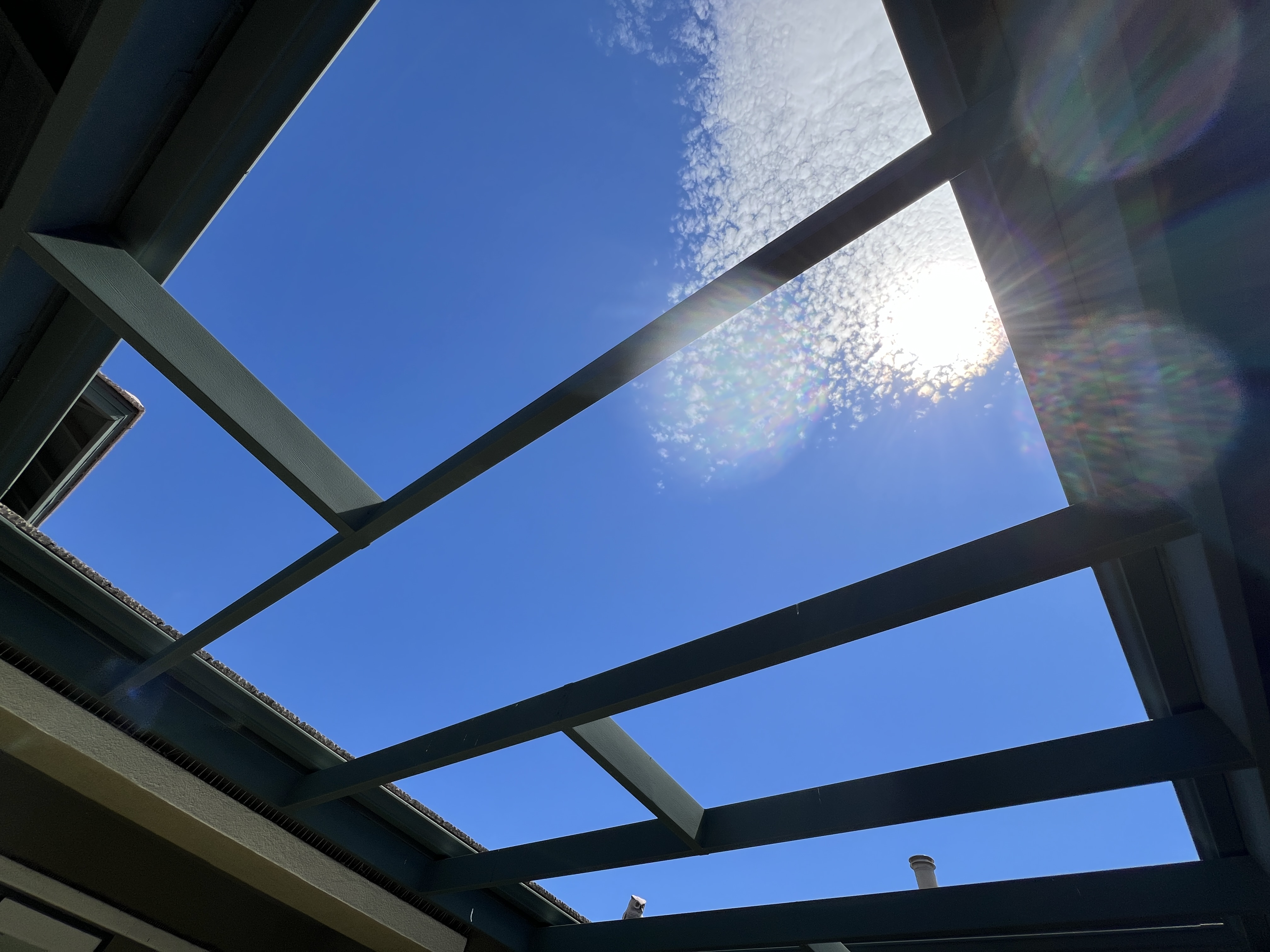 All along every exposed upper surface in the courtyard are anti-bird spike strips, so apparently the current owner considers the presence of birds to be a problem to be solved – we’re more likely to take down the spike strips and put up feeders, so there’s a post-move-in DIY project that even *I* can tackle!