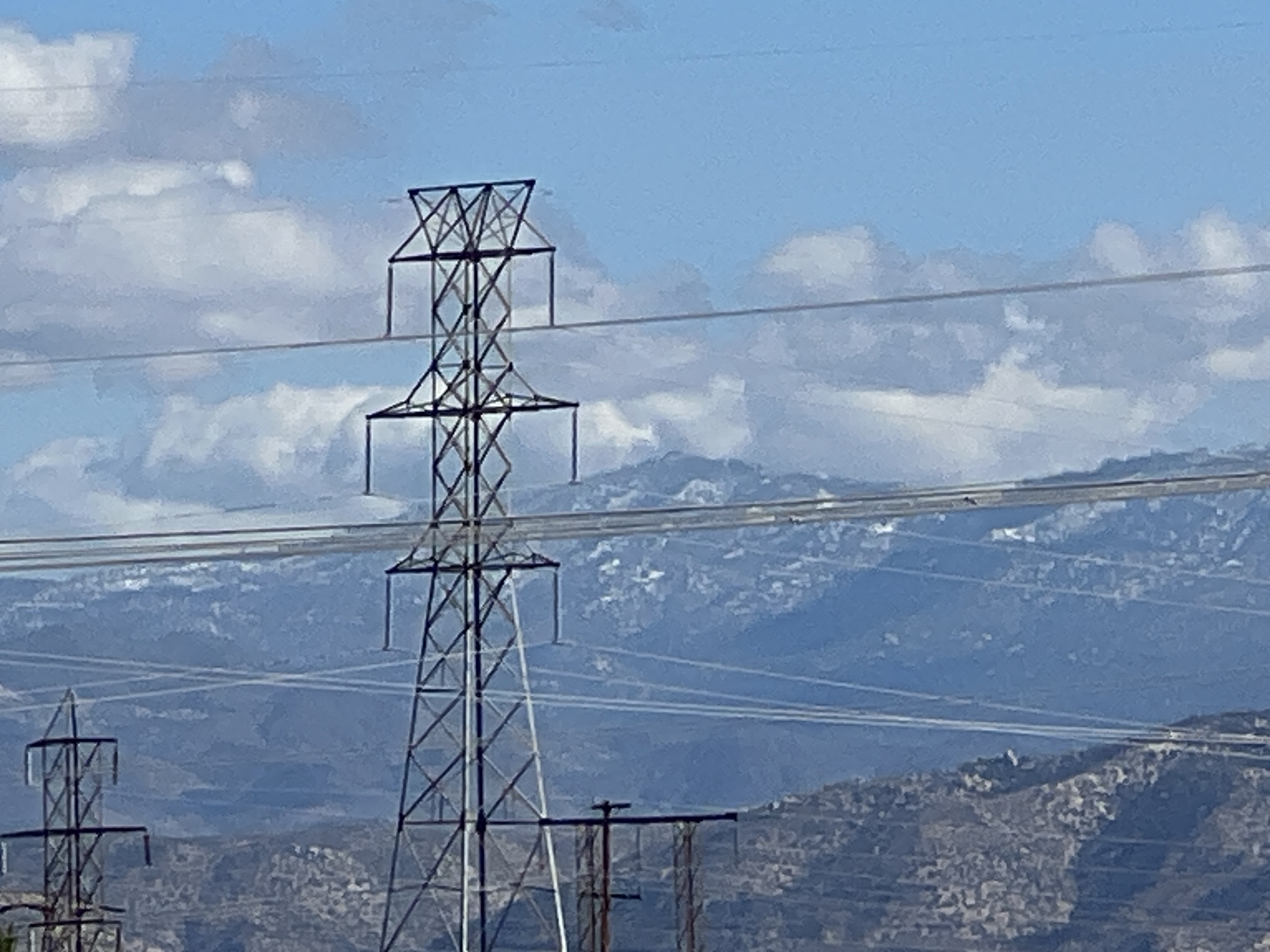 For today, following yesterday’s cold storm, the snow level got down to somewhere below 6,000 feet. Off to our southwest, Mt San Antonio (10,000+ feet) should be a gorgeous, snow-capped wonder, but it was still covered in clouds. However, off to the east, there was some snow on Rattlesnake Mountain (6,093 feet).