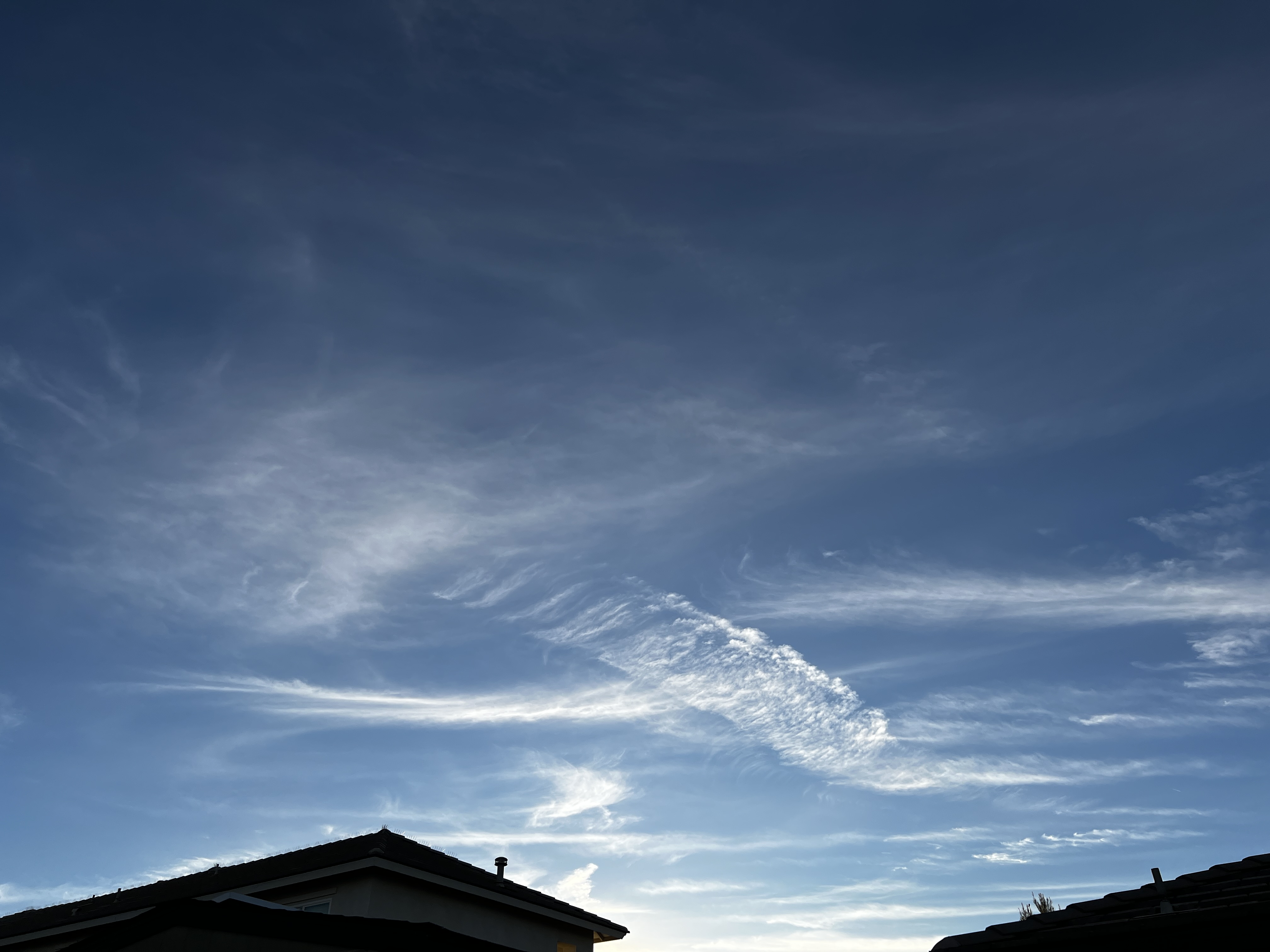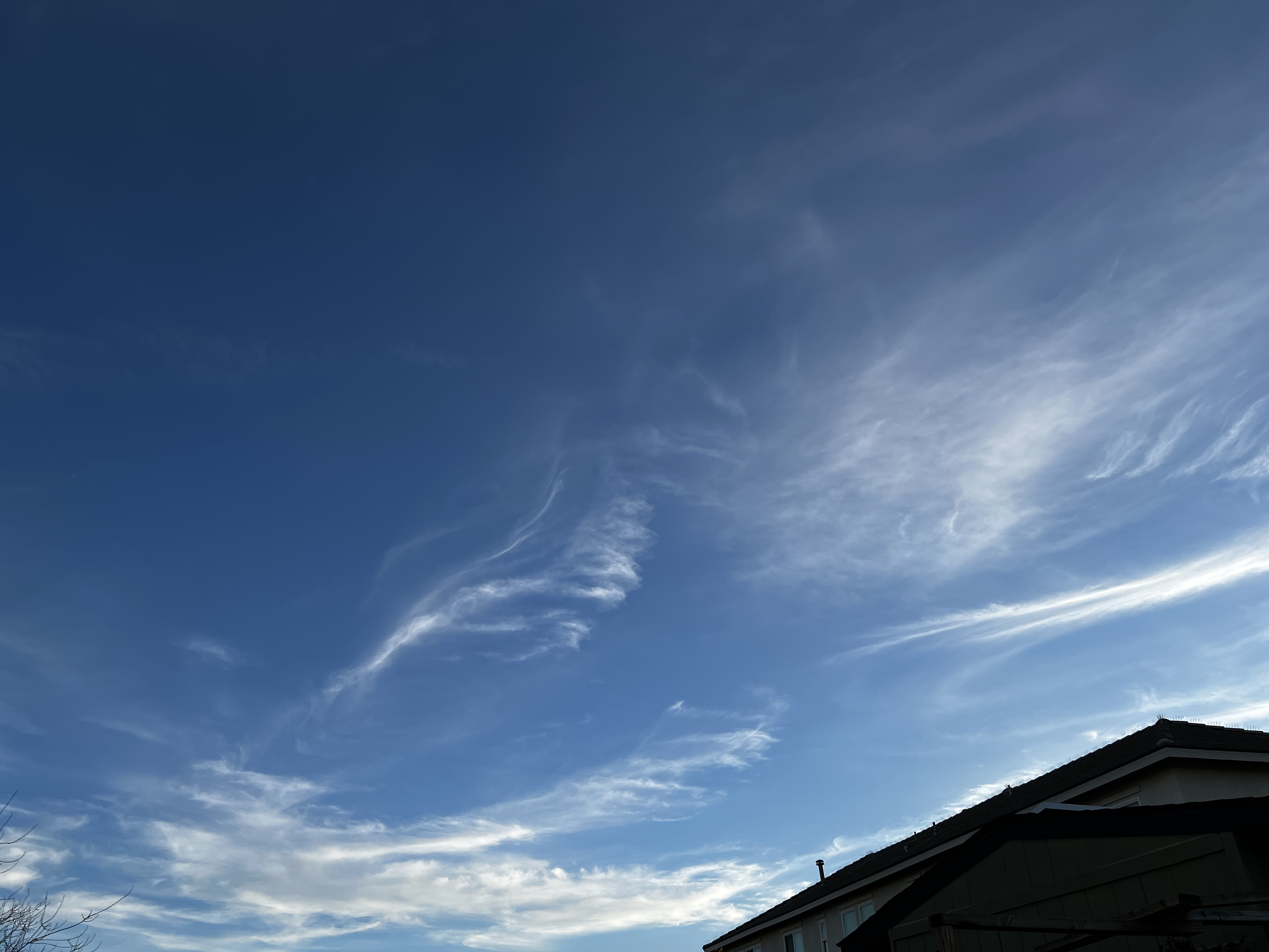 A tiny bit of white atmospheric condensation gives the blue sky some texture, some character, some depth.