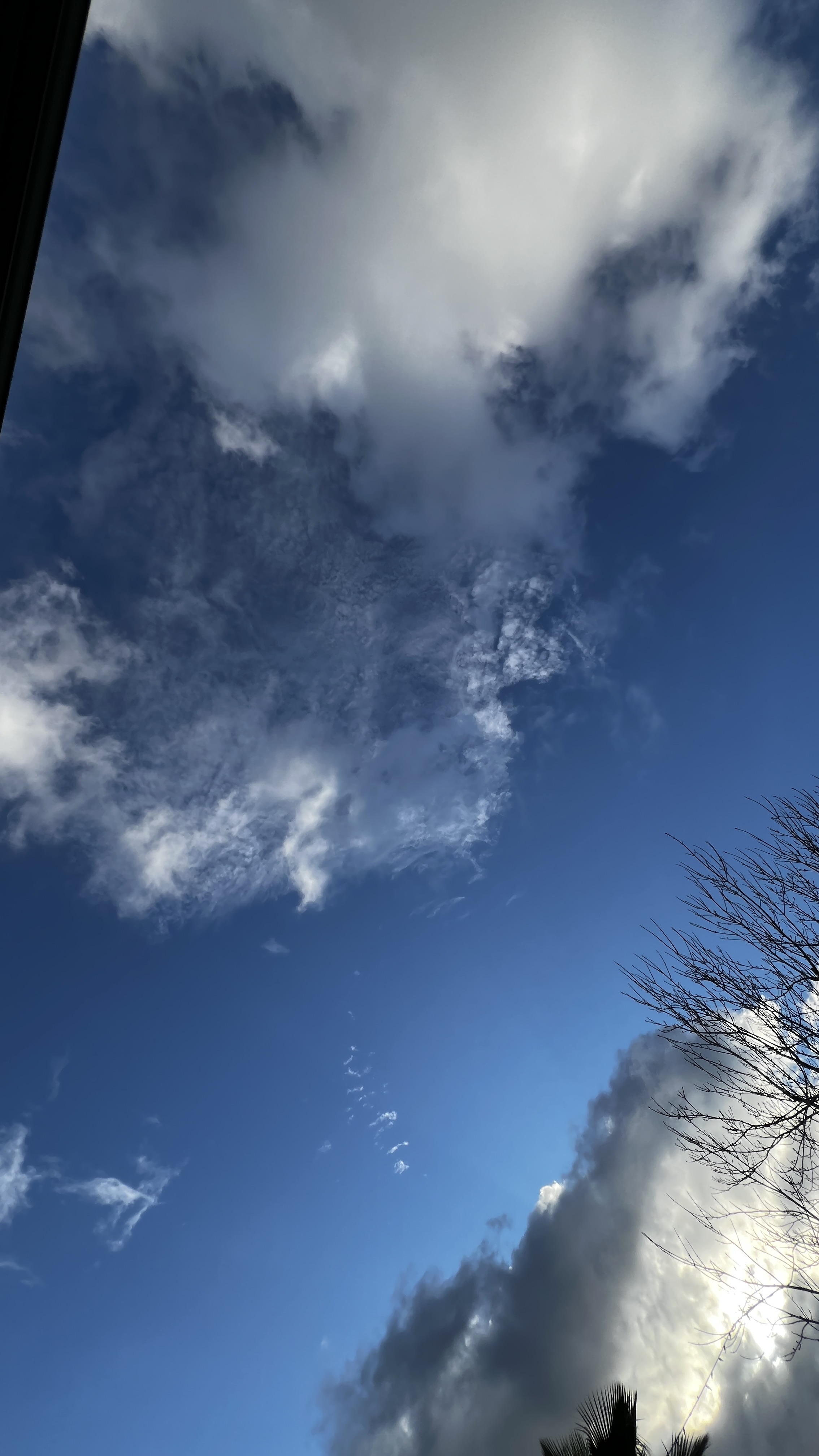 I was wondering what made that straight line splitting the lower layer of lacy clouds – probably a small plane, but it could be something natural. Or a really freakin’ huge bird…