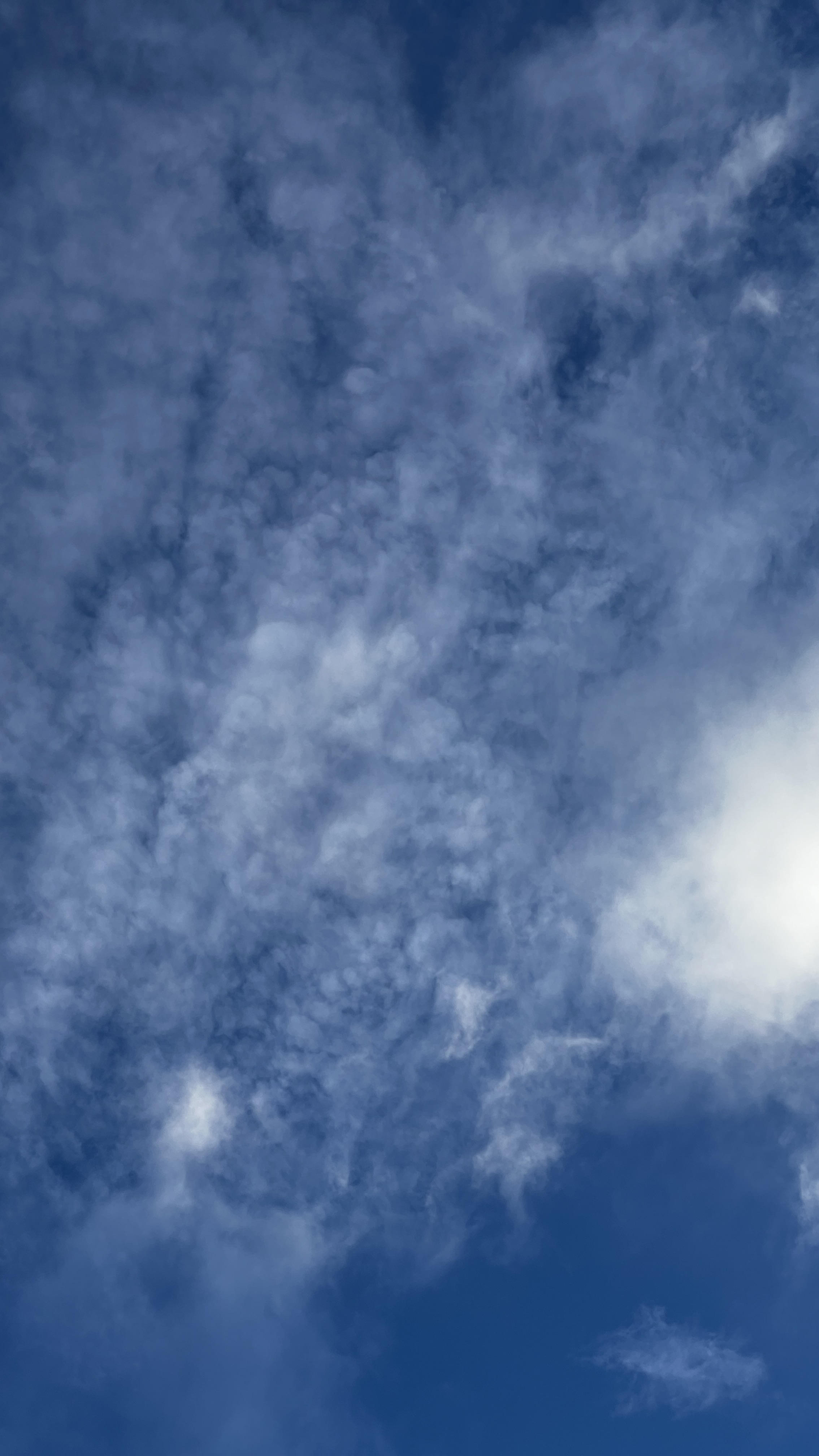 The solid clouds were pretty stationary, and up at probably 3,000′ or so. The thin, lacy ones were much lower, probably about 1,000 feet or so, and moving like a bat out of Hell toward the north.