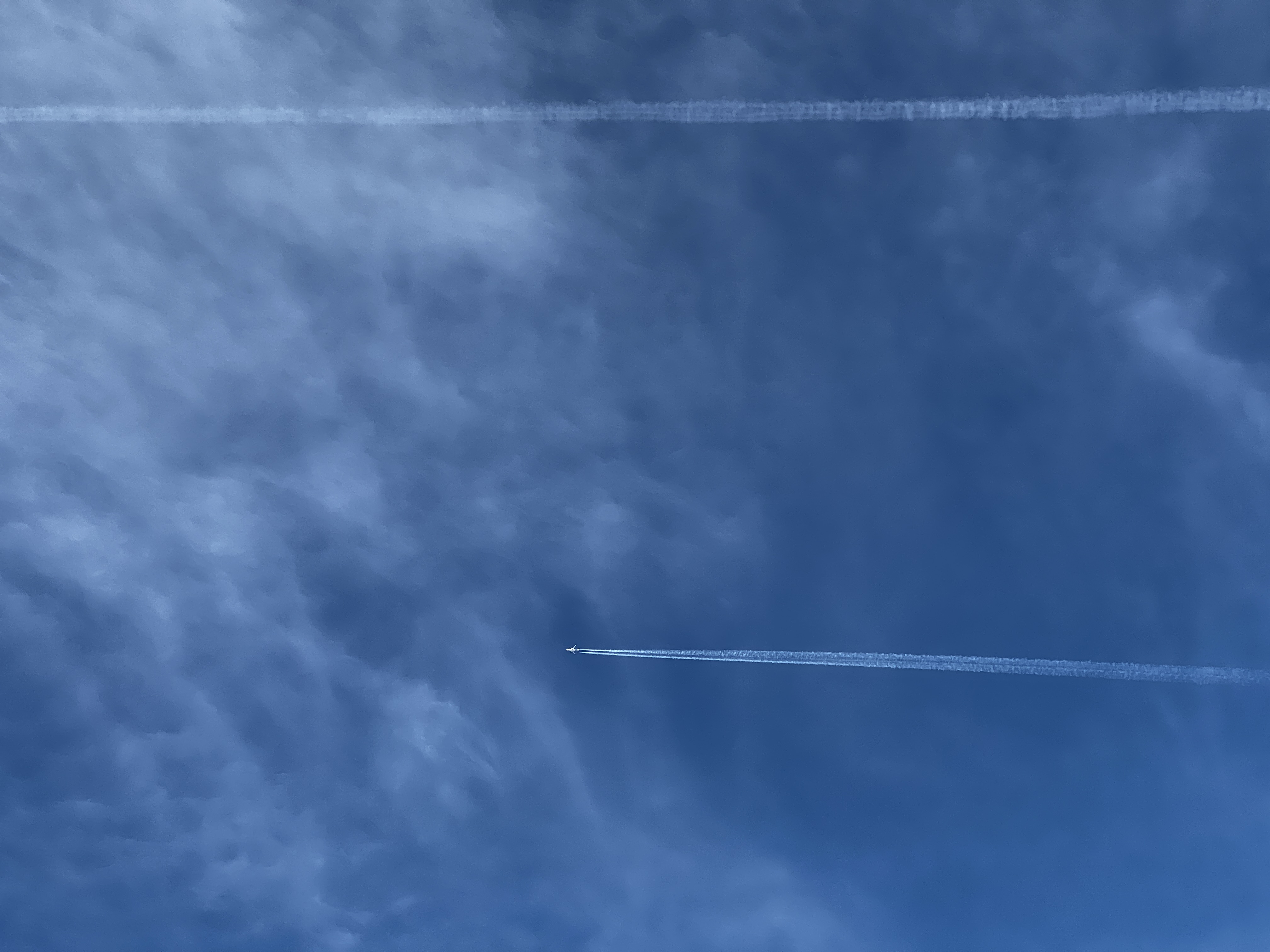 I was out trying to stretch my legs (this afternoon? yesterday? Wednesday? They all blur together) and I saw two jet contrails heading more or less west or west northwest.