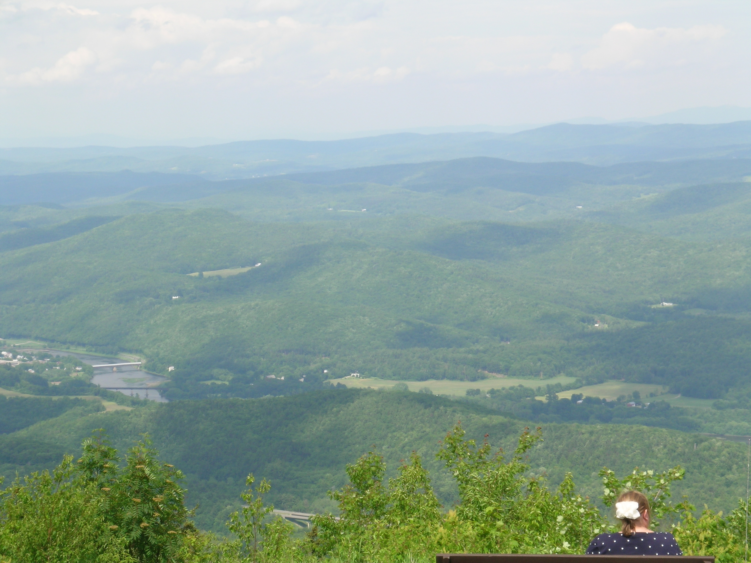 The Connecticut River valley from a rest stop near the top of Mount Ascutney, New Hampshire on the other side, stretching off to the east.