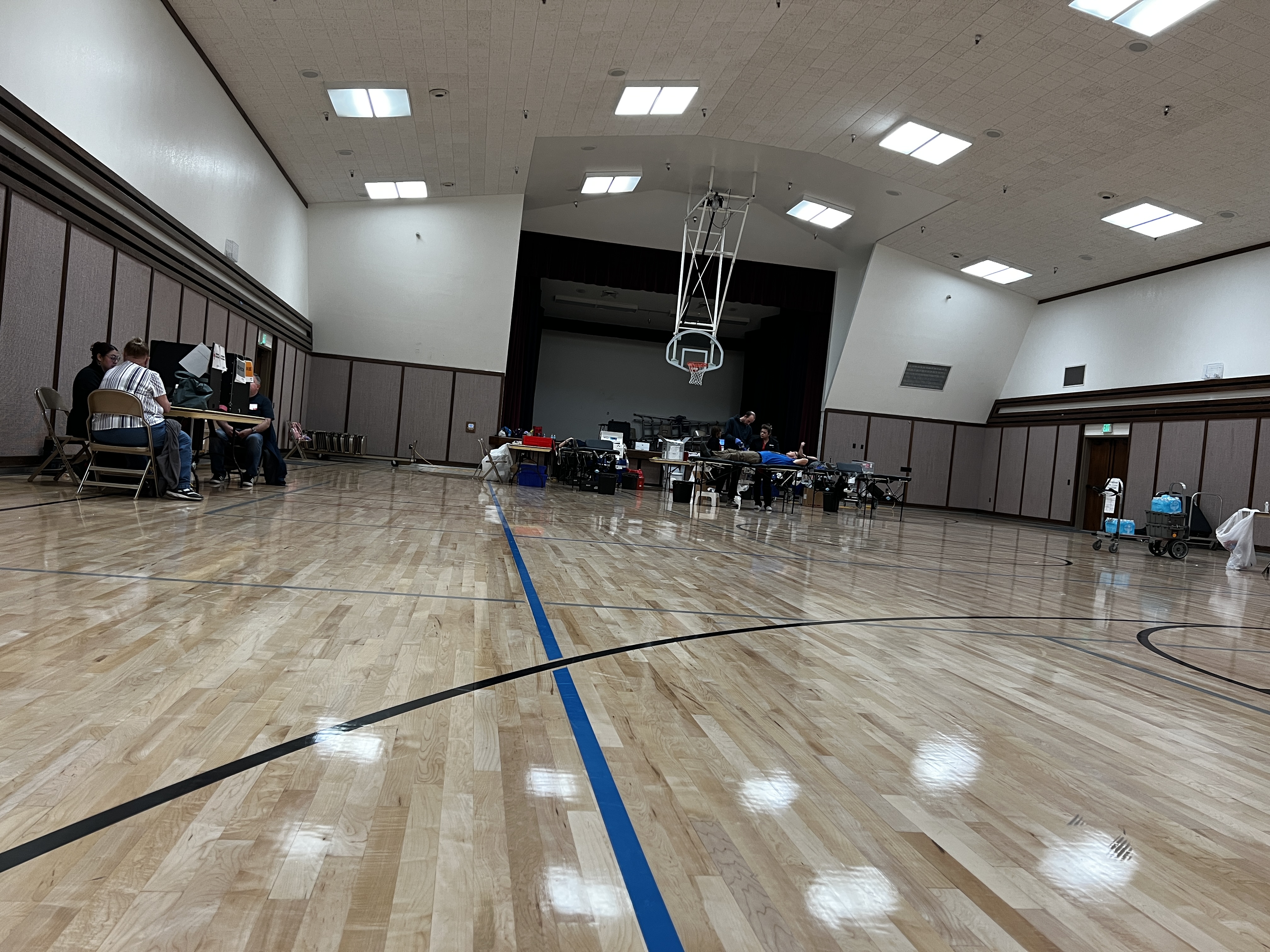 And not just any old gym, but the one at the local LDS church/school. That’s where our local blood drive is every three months, it appears. No more of this having a Red Cross donation center open seven days a week just two miles away!