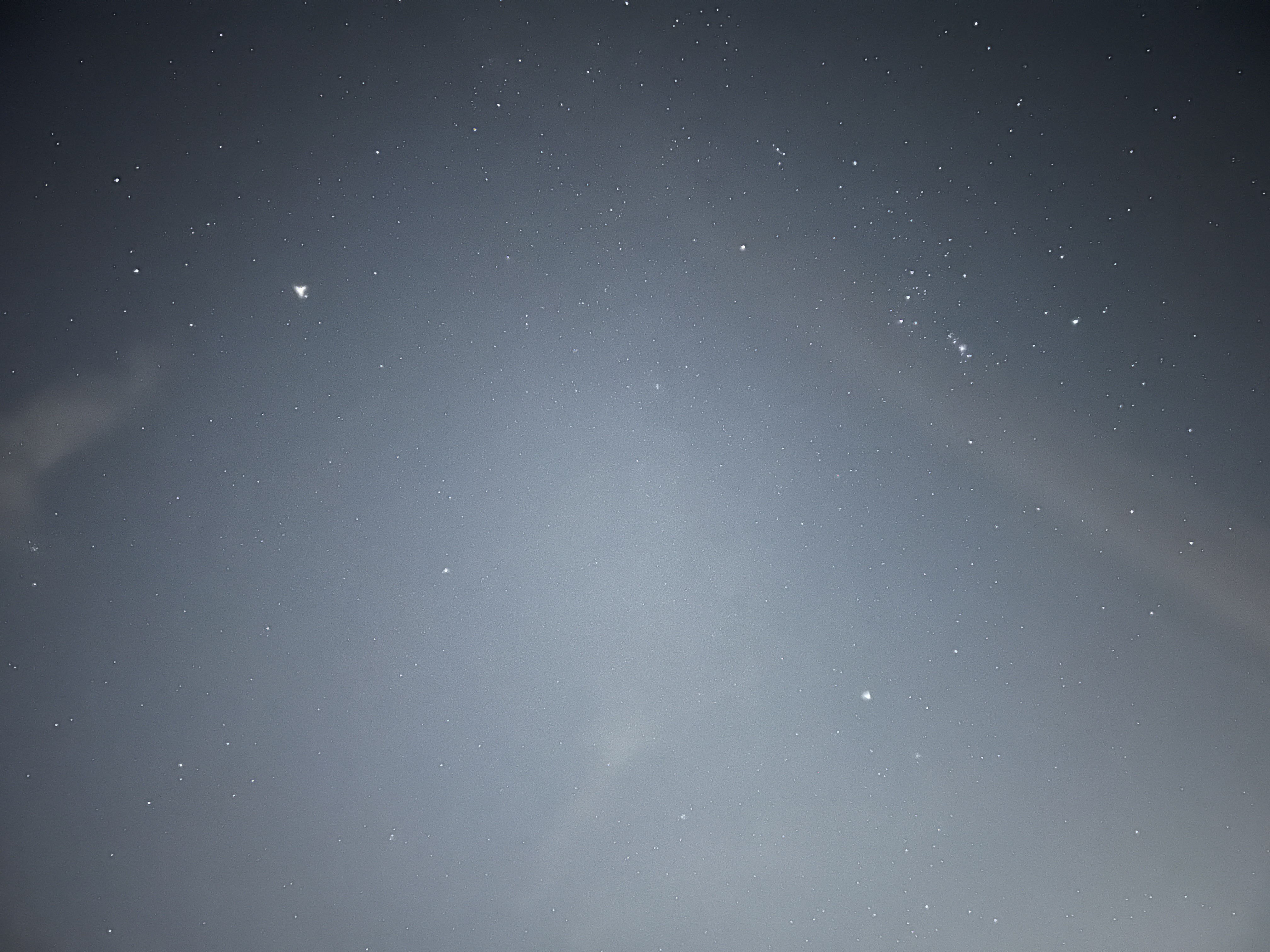 This even works with the telephoto lens in use, as seen here by a closeup of Orion. You can even see a fair bit of the luminosity around the Orion Nebula, the “middle star” in the “sword.”