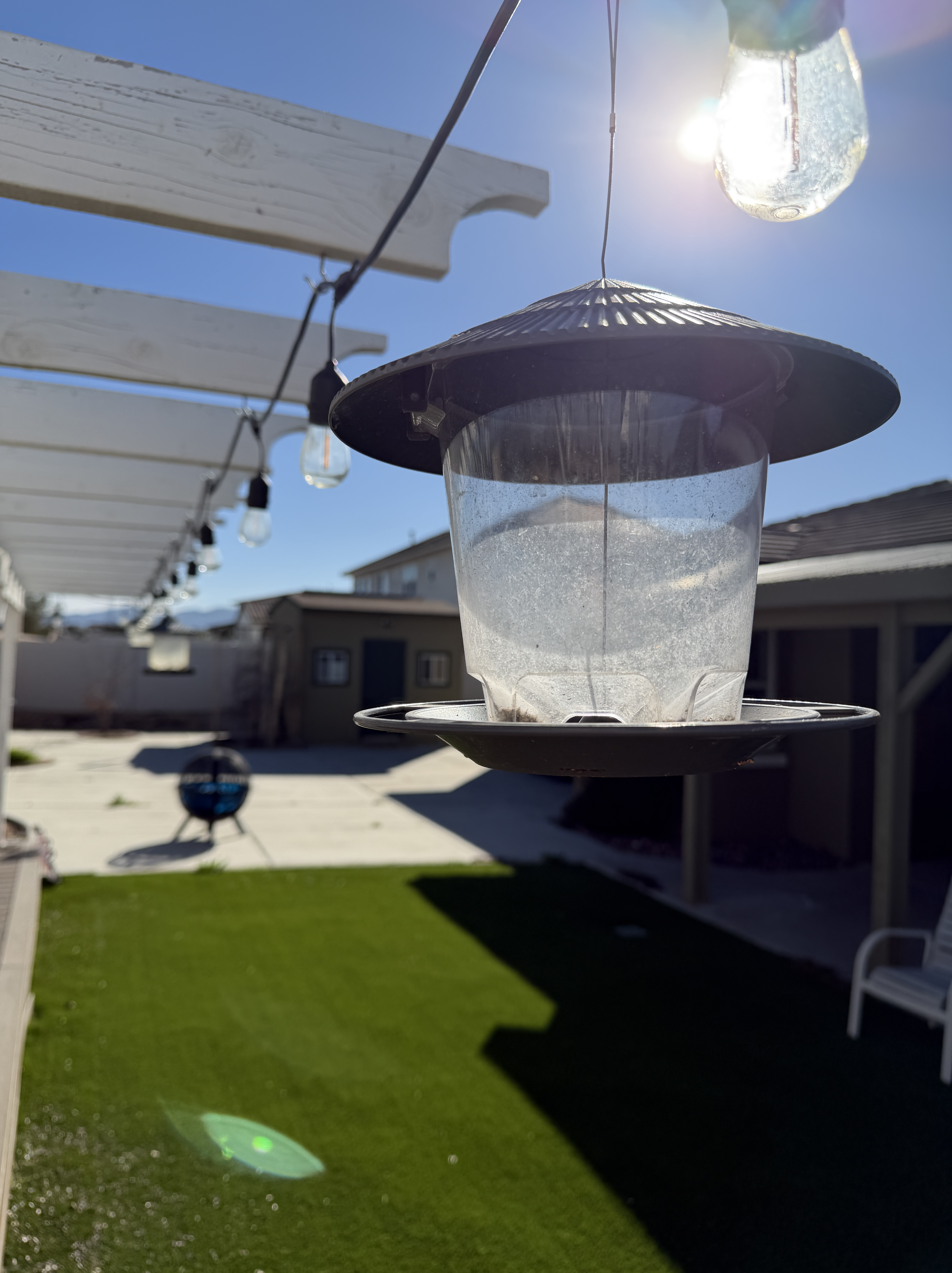 So it was time to re-fill the bird seed feeders, that have been empty for the last three weeks.