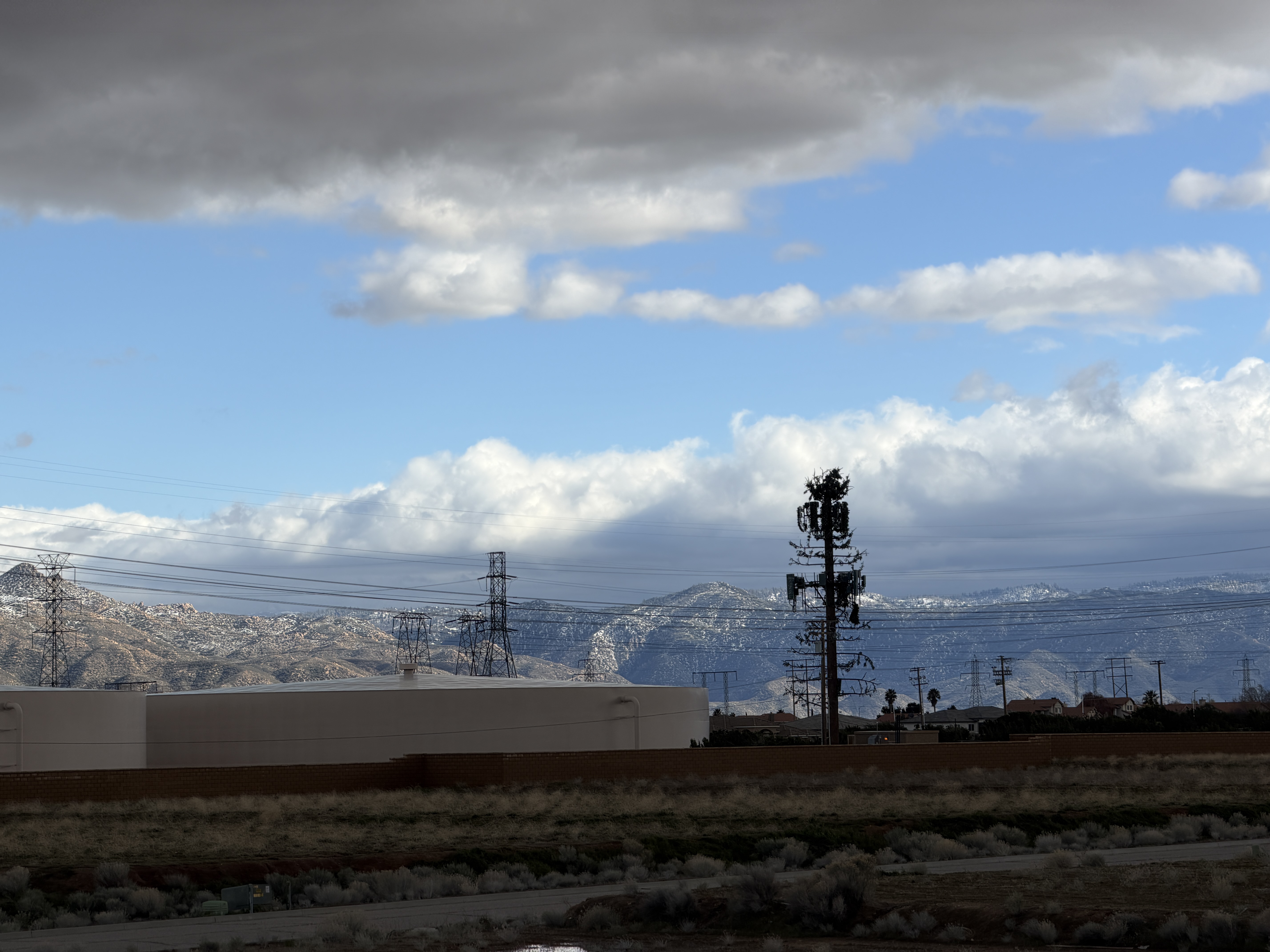 What was new, this being the coldest storm so far since we’ve moved in, was the snow on The Pinnacles just at the east end of Victor Valley.