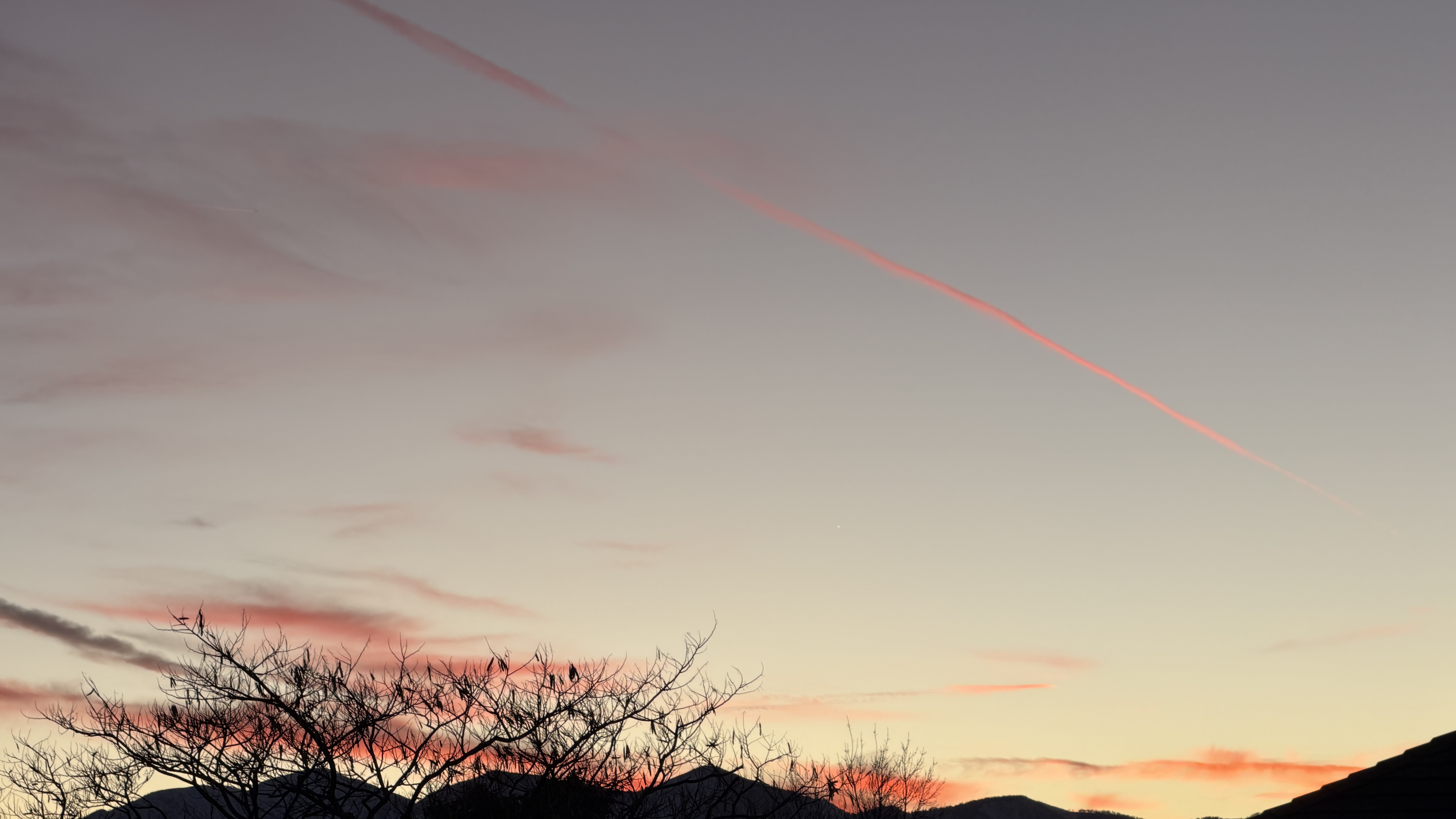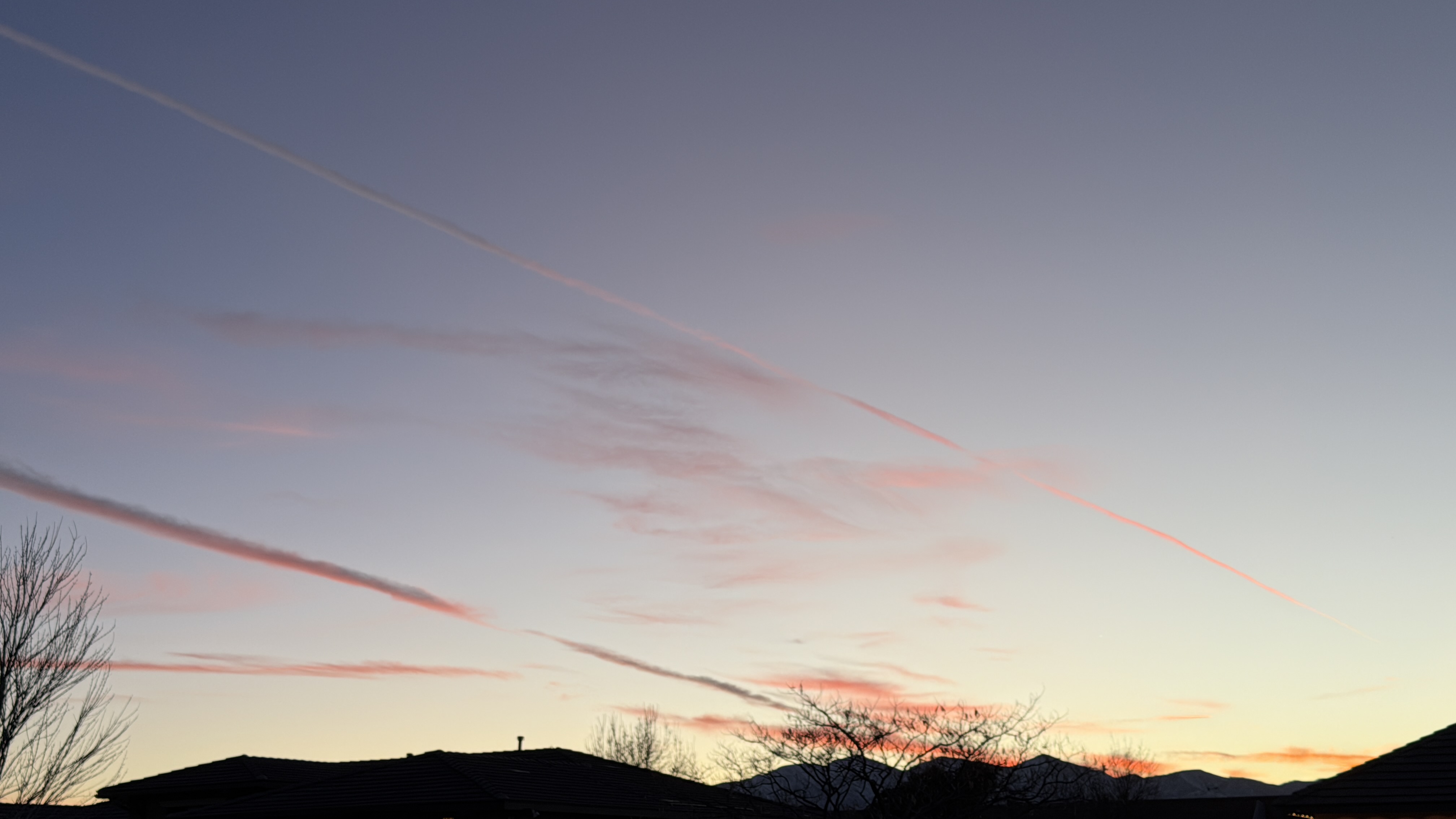 A few contrails lit up in nice shades of pink and purplish-orange.