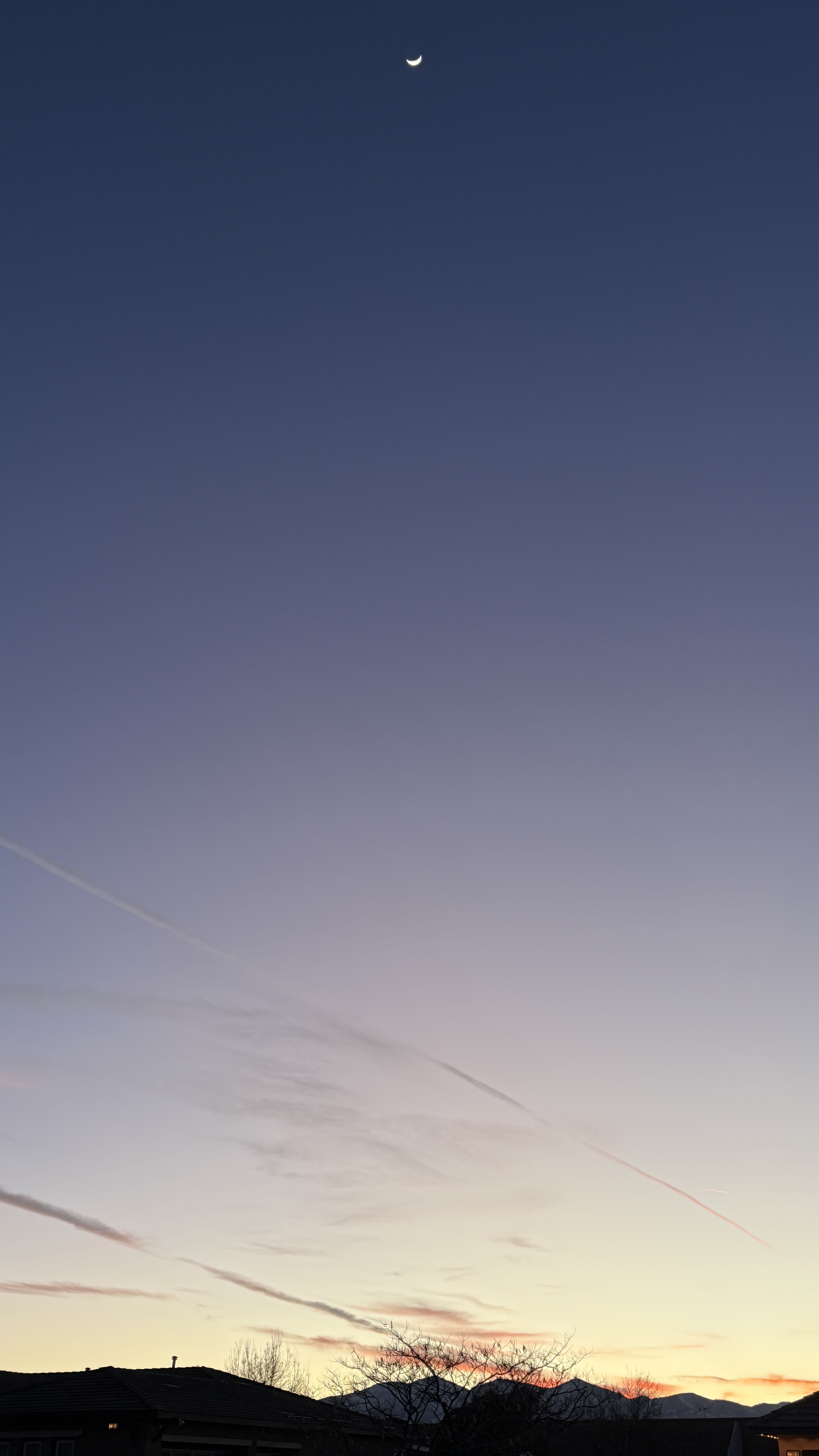 And rising even further away from the Sun, but still close enough to get into the picture with the proper iPhone camera settings, the Moon is now four days past new and 23% illuminated.