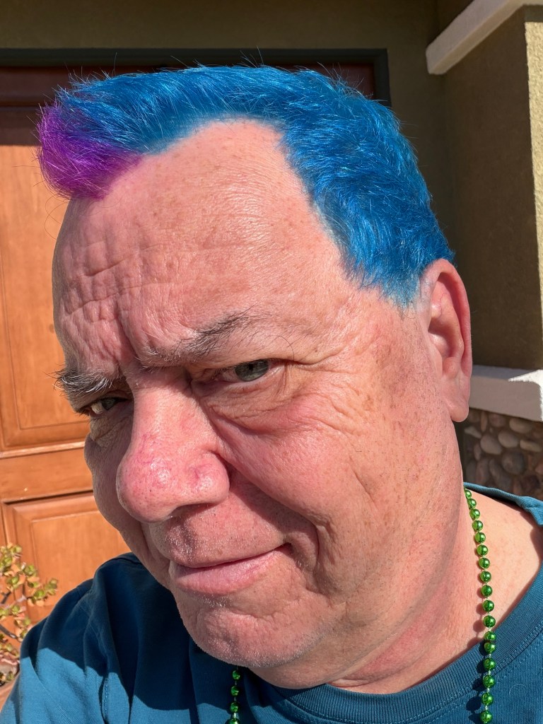 As for the ‘do, I got a “cool hair!” from a pre-tween who was immediately shooshed by his mother. At one of the AZ rest stops yesterday I got a double take from a macho, stud muffin, manly man truck driver on the way back to his parked rig, followed by a stare, sideye, and what I assumed was an overtly homophobic sneer and snarl. (I waved 👋🏽 HI!! 💋) MISSION ACCOMPLISHED!