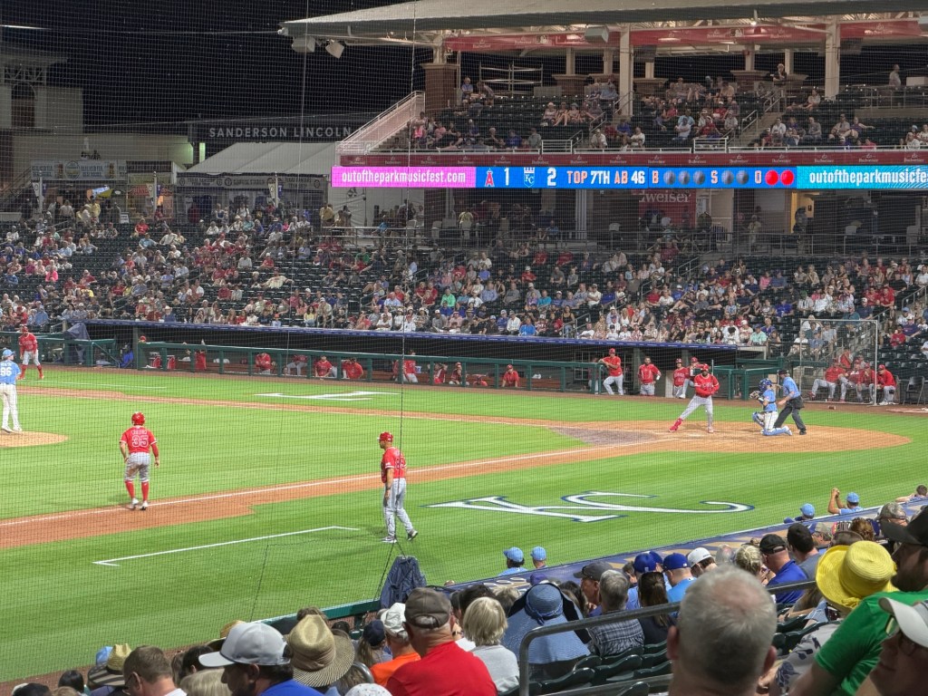 Surprise Stadium, spring training home of both the Texas Rangers and KC Royals was lovely. No lines for food or drink all might, except for the ice cream, which had a line over 20 minutes long.9