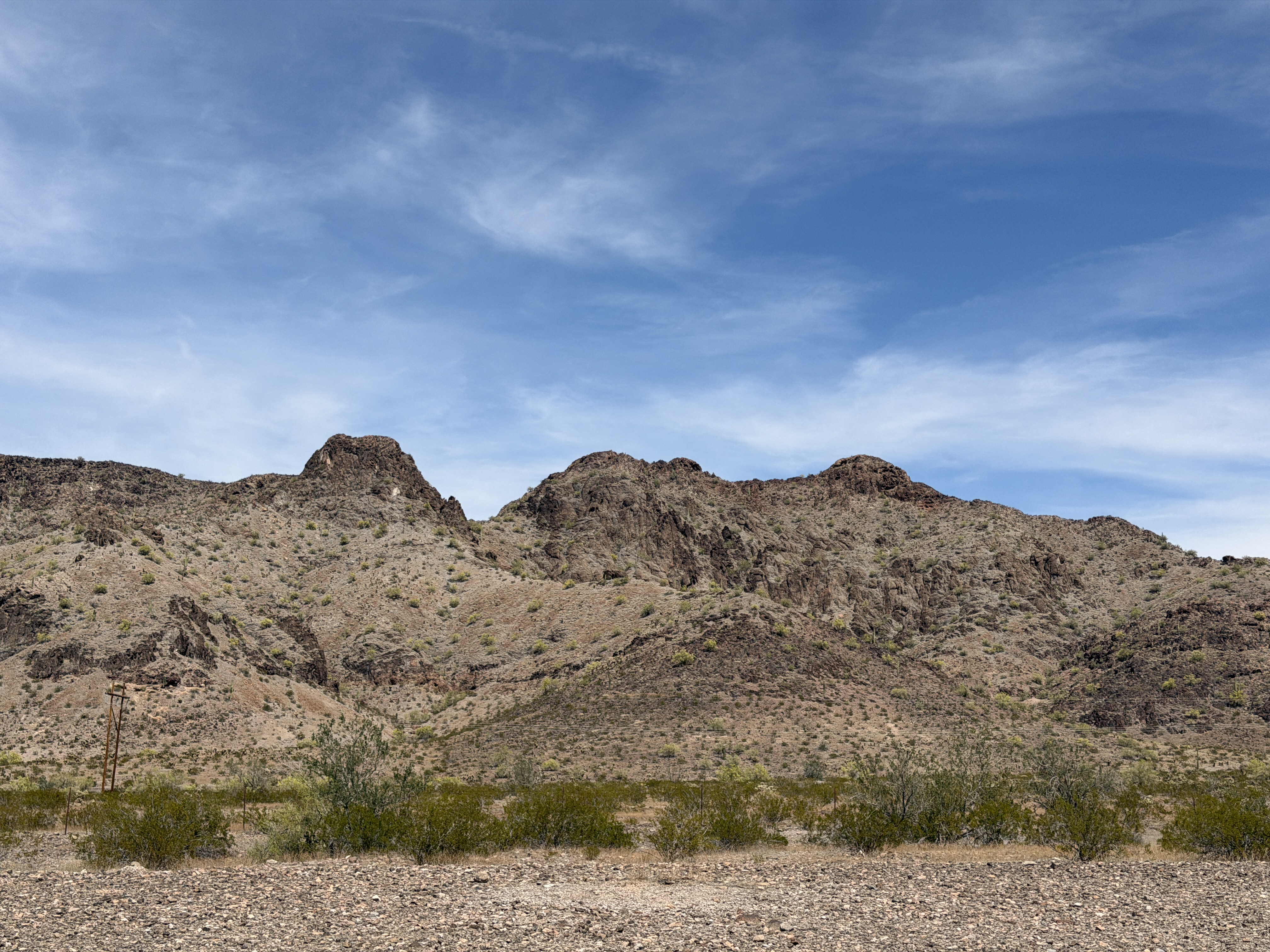 Eight hours across the Mojave again, rest stops in reverse order, 105° and worse. Hissy was a champion!