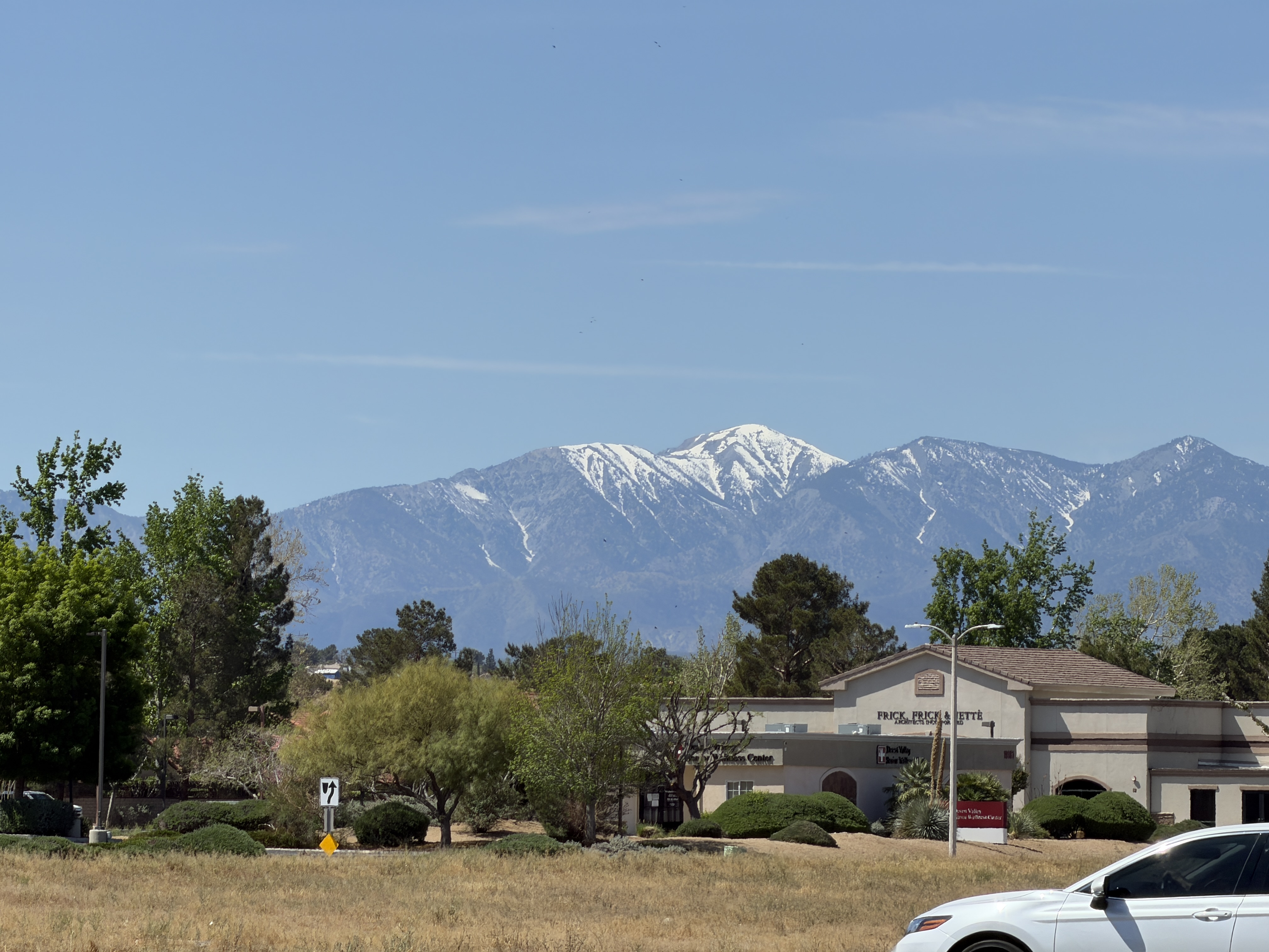 Just what it says! It’s the end of March and while I’m disappointed that we never actually got snow on the ground here in Victor Valley at about 3,574 feet (the closest was about 4,200 feet or so), it is beautiful to look off to our southwest and see Mount San Antonio every day, still covered in show.