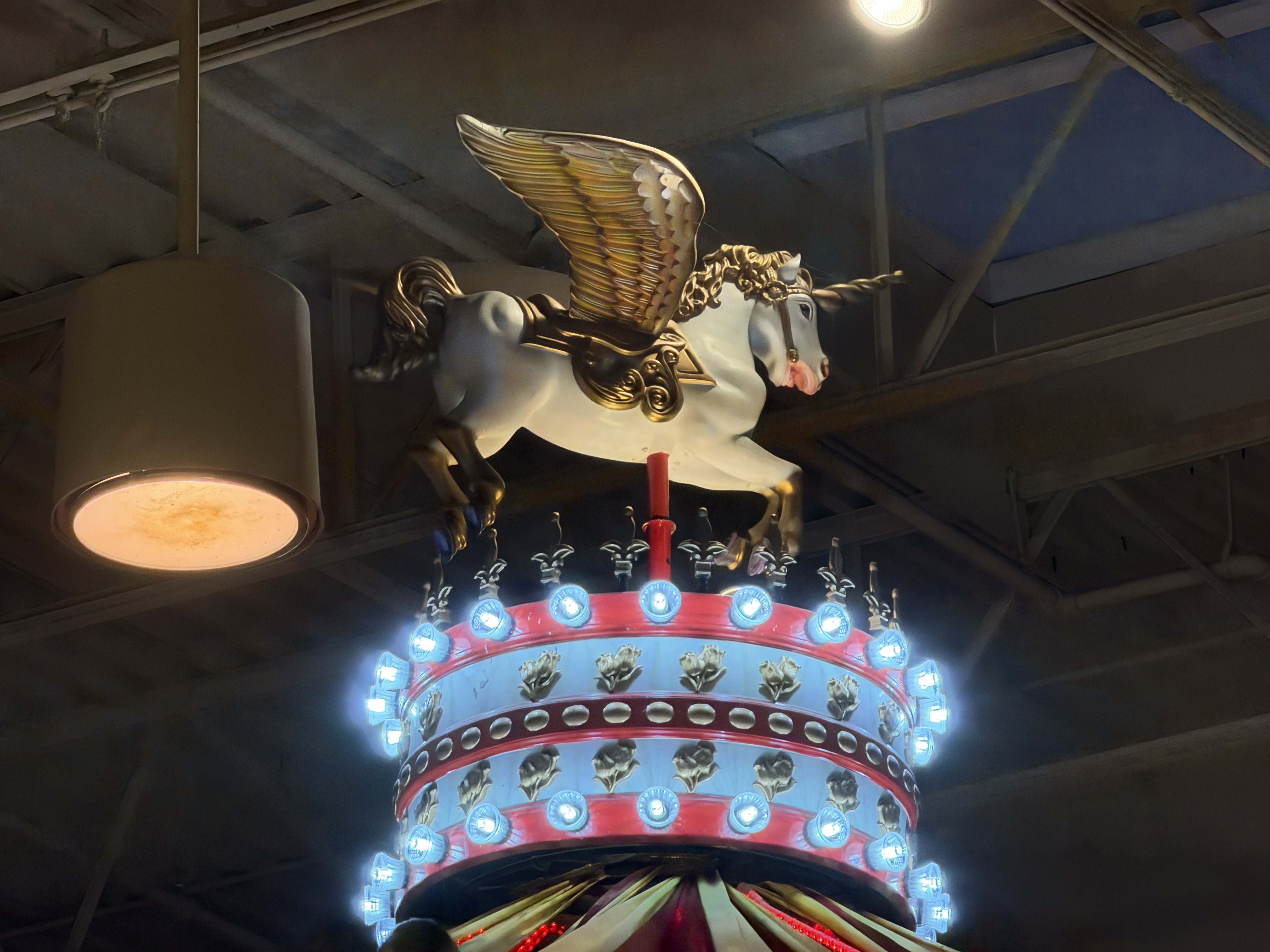 I did not ride the merry go ’round, I just watched it. I’m still emotionally compromised by Ray Bradbury’s carousel in “Something Wicked This Way Comes,” and the one in “American Gods” didn’t help. For all of their beauty and whimsy and child-like wonder, both Gaiman and Brandbury recognized the underlying current of horror.