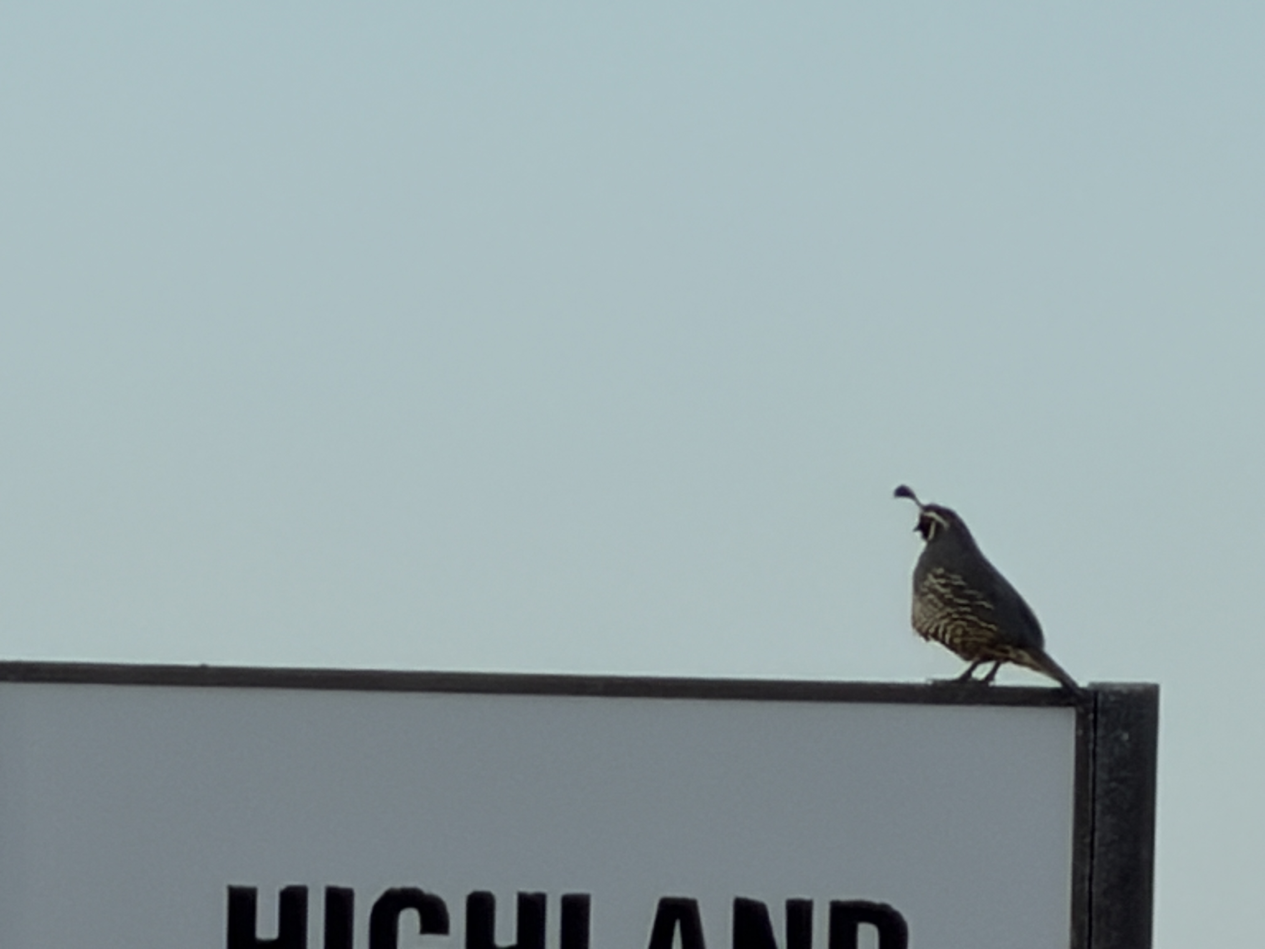 I couldn’t get too close without spooking them again and this “adventure” was sort of spontaneous and spur of the moment, so I didn’t have my good camera and telephoto lens with me, just my cell phone, and it was getting dark shortly after sunset, so the couple of photos I got were marginal. But… That’s a California Quail, not much doubt about it.