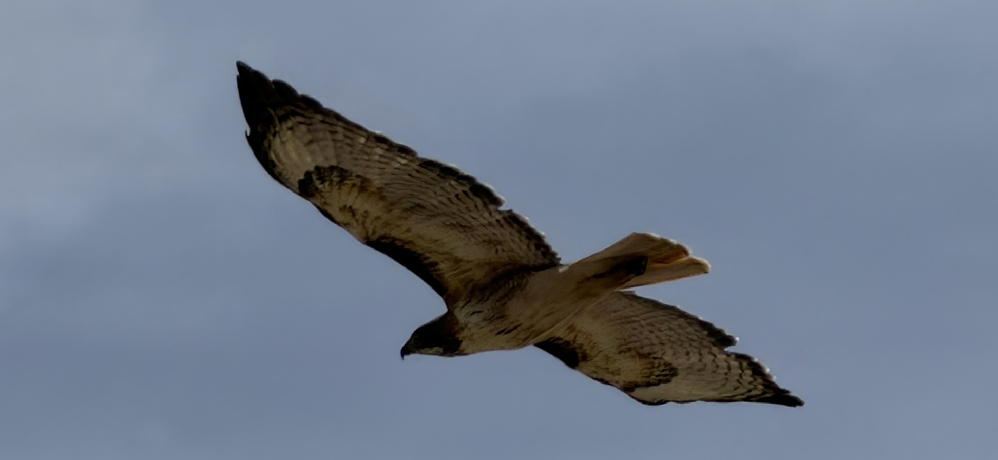 Coming in low, just on the other side of our backyard wall, was one of the local red-tailed hawks.