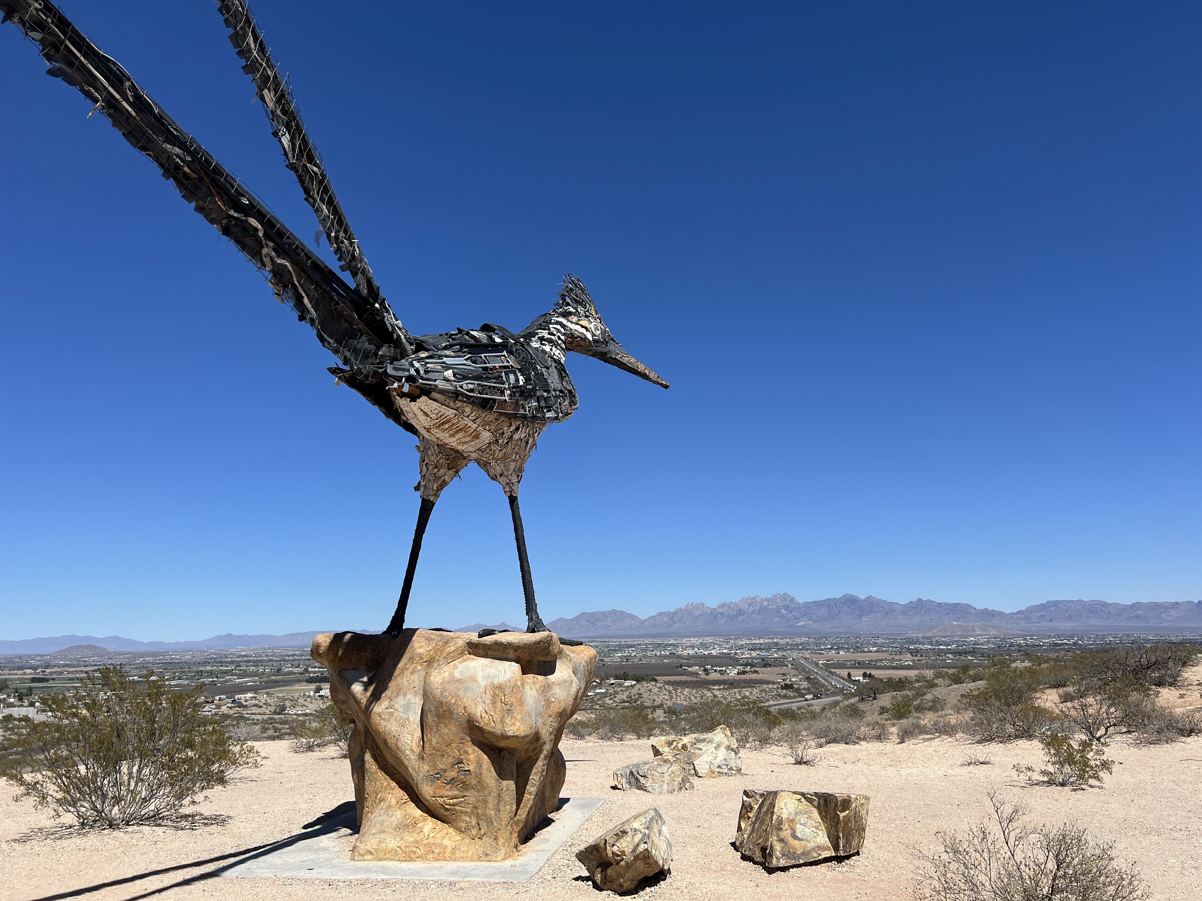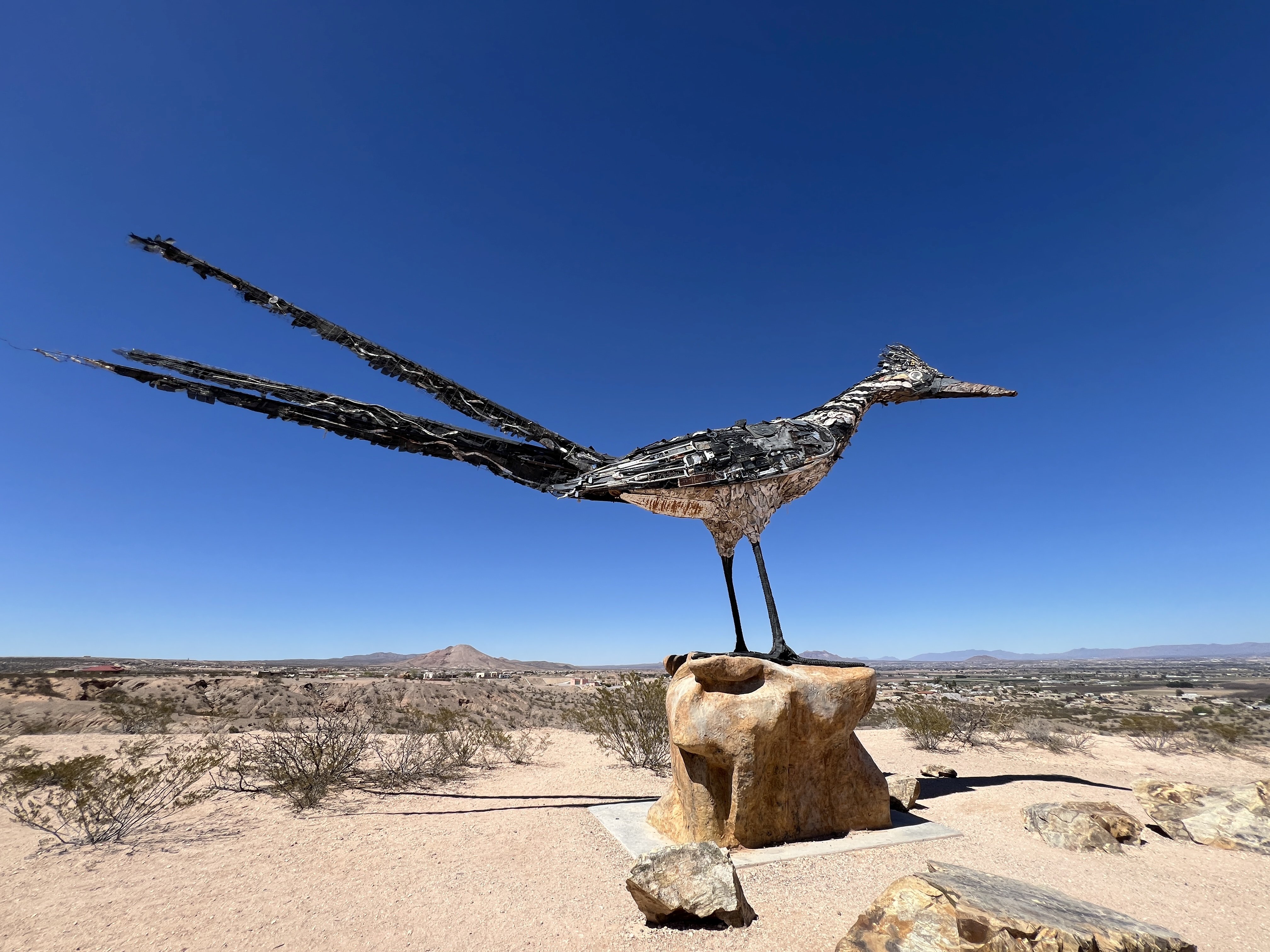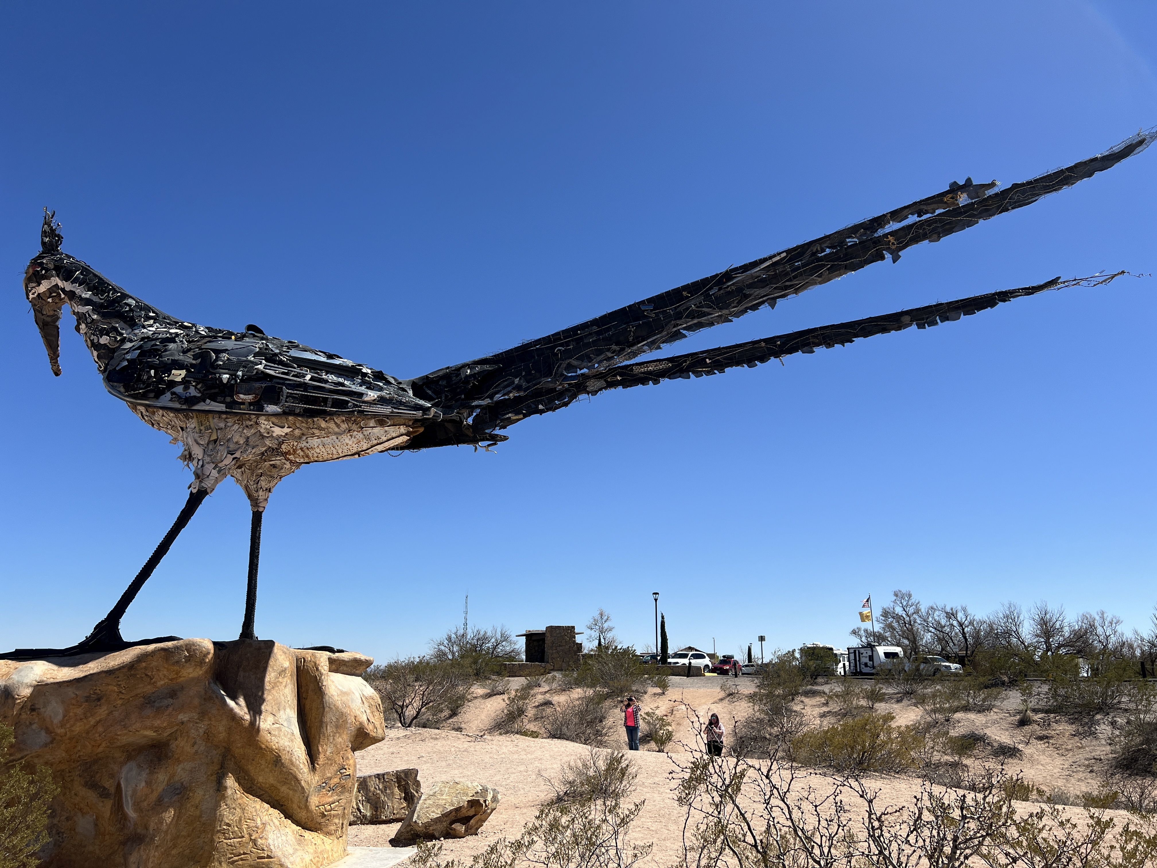Two weeks ago I was driving for many hours from Benson, AZ to Fort Stockton, TX and only had time after adventures in dining to post one cryptic selfie of me standing in front of a humongous roadrunner statue.